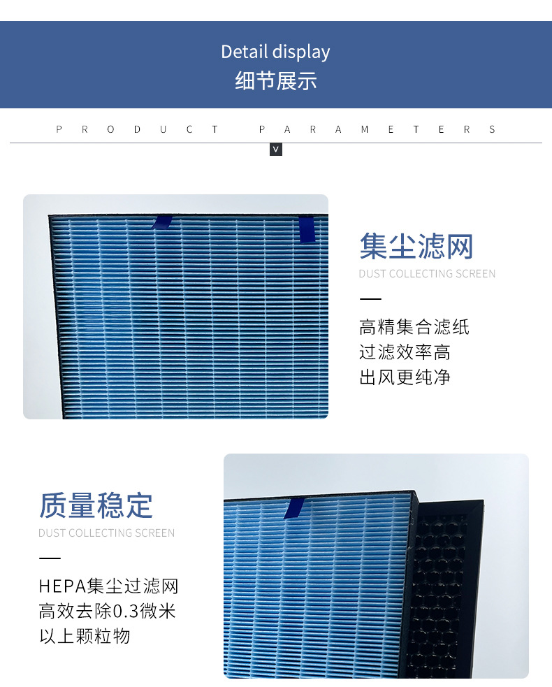 - Premium Quality Material: Features a multi-layer filtration system, including a visible blue HEPA filter for dust and haze, and an activated carbon layer for formaldehyde and odors.