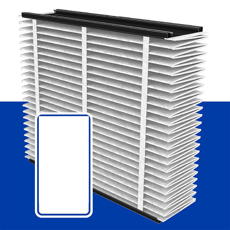 - Premium HEPA Material: Crafted with high-efficiency HEPA filtration media, this filter is built to capture airborne particles down to microscopic sizes, visible in its dense pleats.