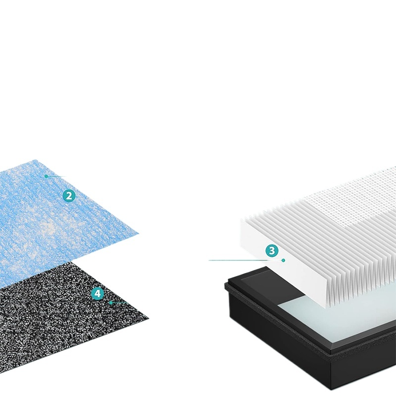 - Premium Filtration: Features a 4-in-1 design for comprehensive air purification, including HEPA filtration for fine particles, activated carbon for odors, and additional layers for enhanced performance.