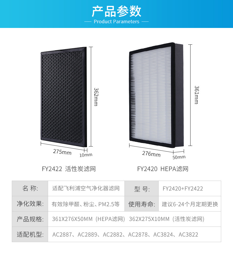 - Premium Filtration: Includes both a high-efficiency HEPA filter (FY2422) for PM2.5 removal and an activated carbon filter (FY2420) for formaldehyde and odor elimination.