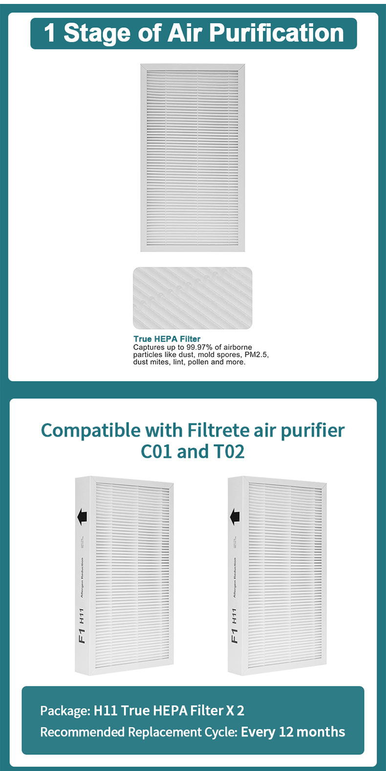 - Value Pack: Includes two (2) replacement filters, offering extended filtration life and excellent value, ensuring continuous clean air.