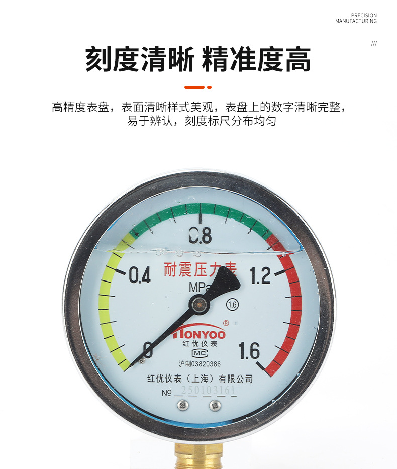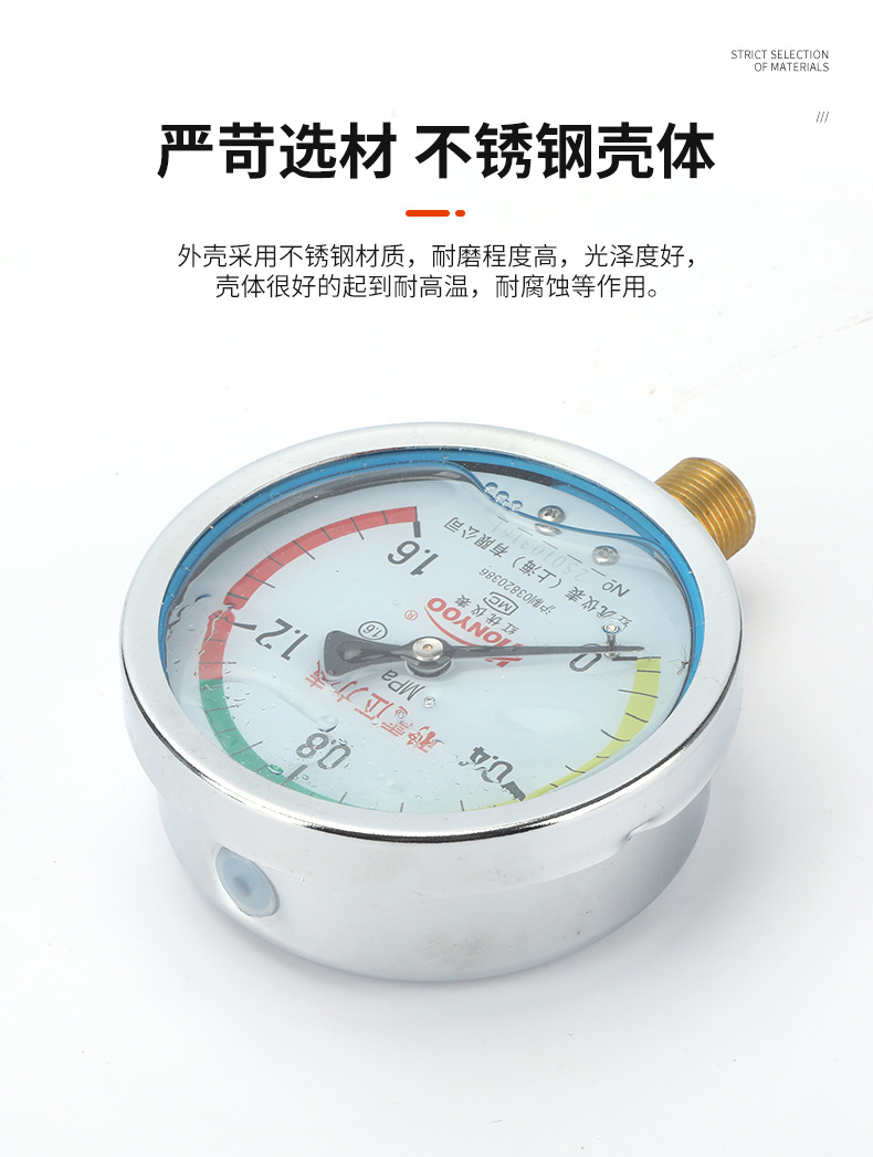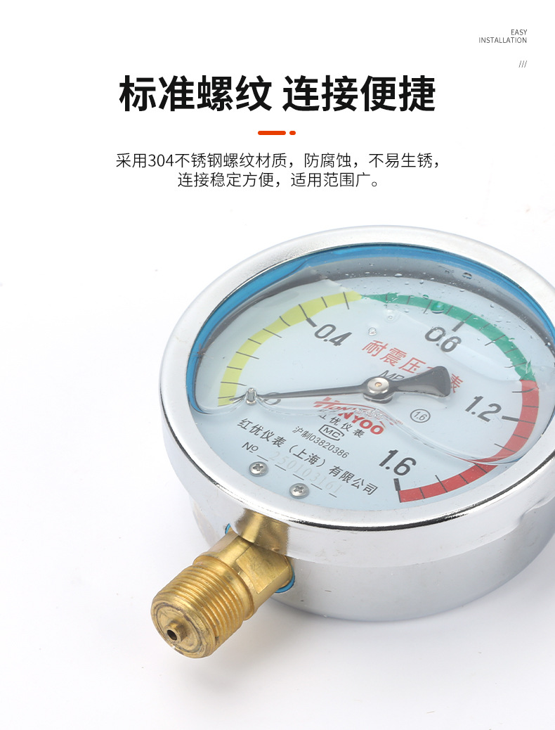 - Wide Compatibility: YN100 series pressure gauge with various ranges available, compatible with HVAC systems, fire pipelines, and natural gas lines, offering versatile application.