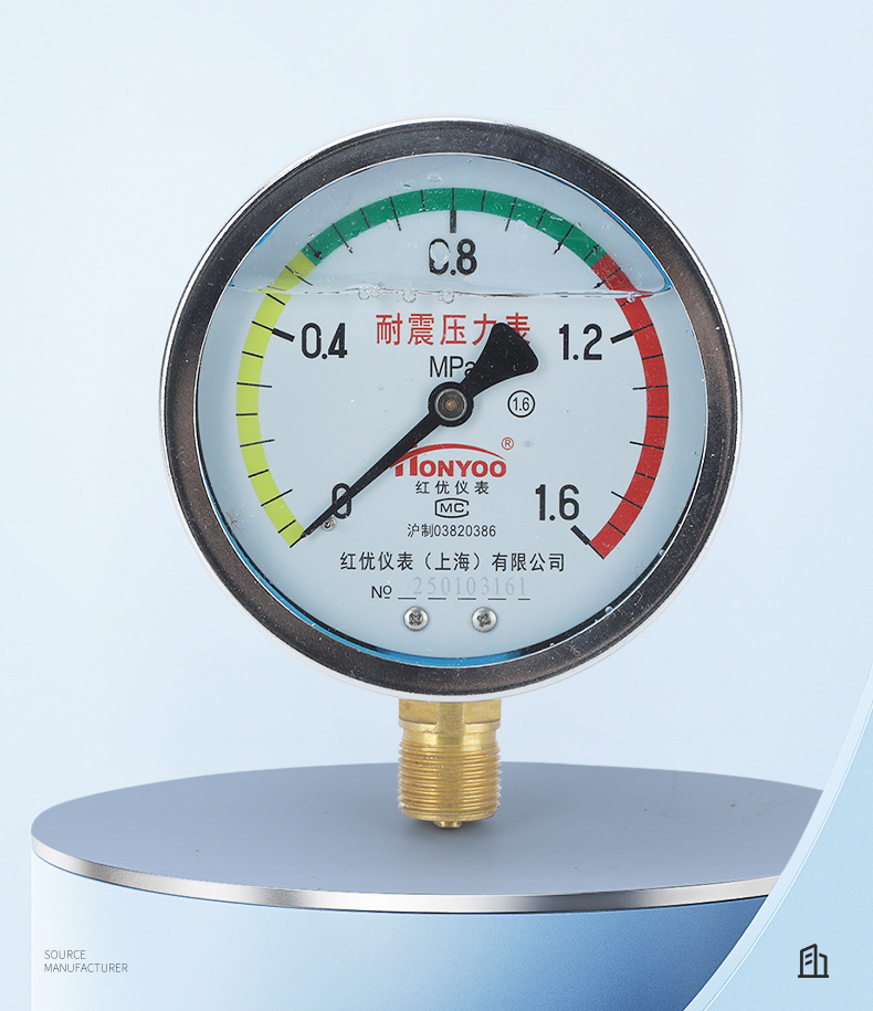 HONGYOU YN100 Shock-Resistant Pressure Gauge (0-1.6MPa / 16kg) for HVAC Systems