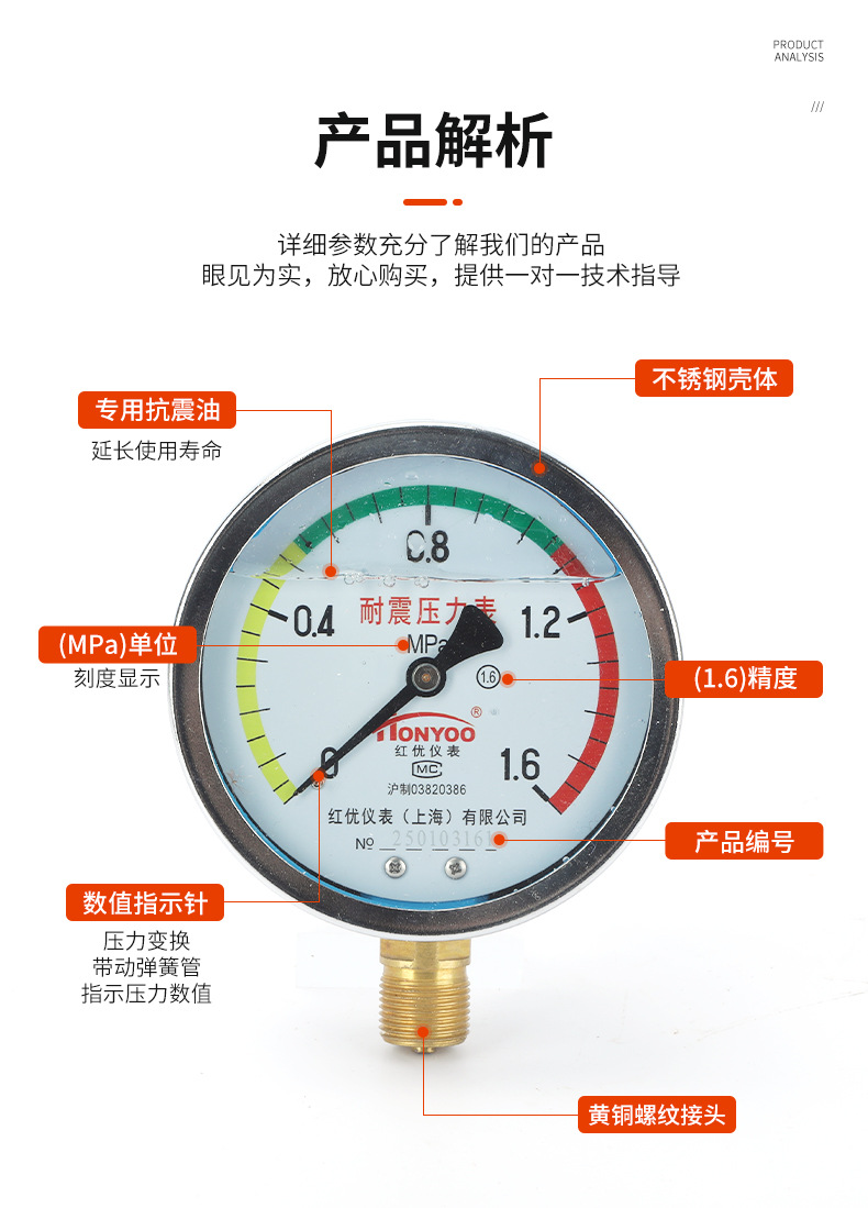 - What You Get: One YN100 shock-resistant pressure gauge. Choose from various pressure ranges to meet your specific needs for HVAC, plumbing, and industrial applications.