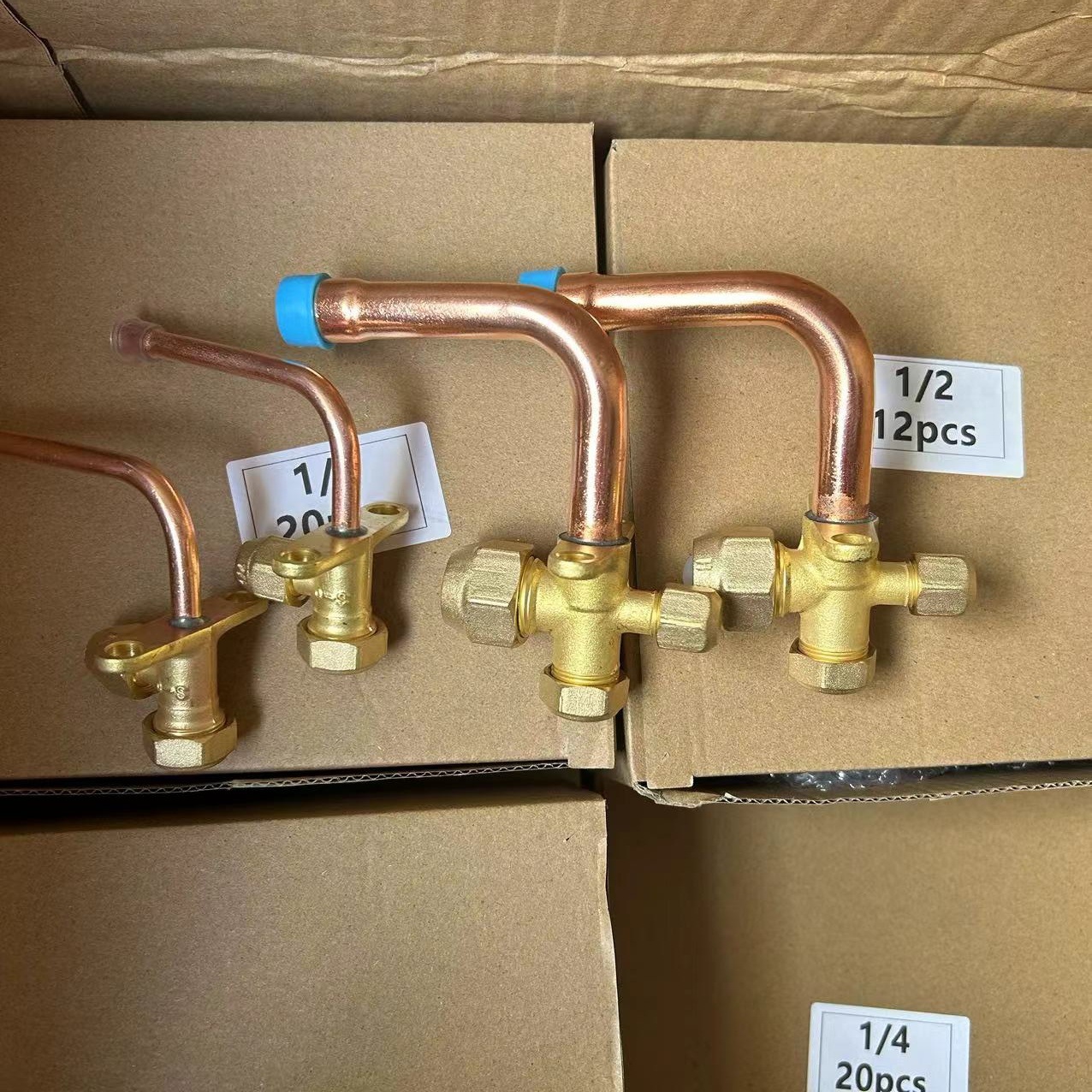 HVAC Air Conditioner Bent Tube Shut-off Valve (2-5分的规格全) Made of Pure Brass Ensures Oil Resistance and Corrosion Protection
