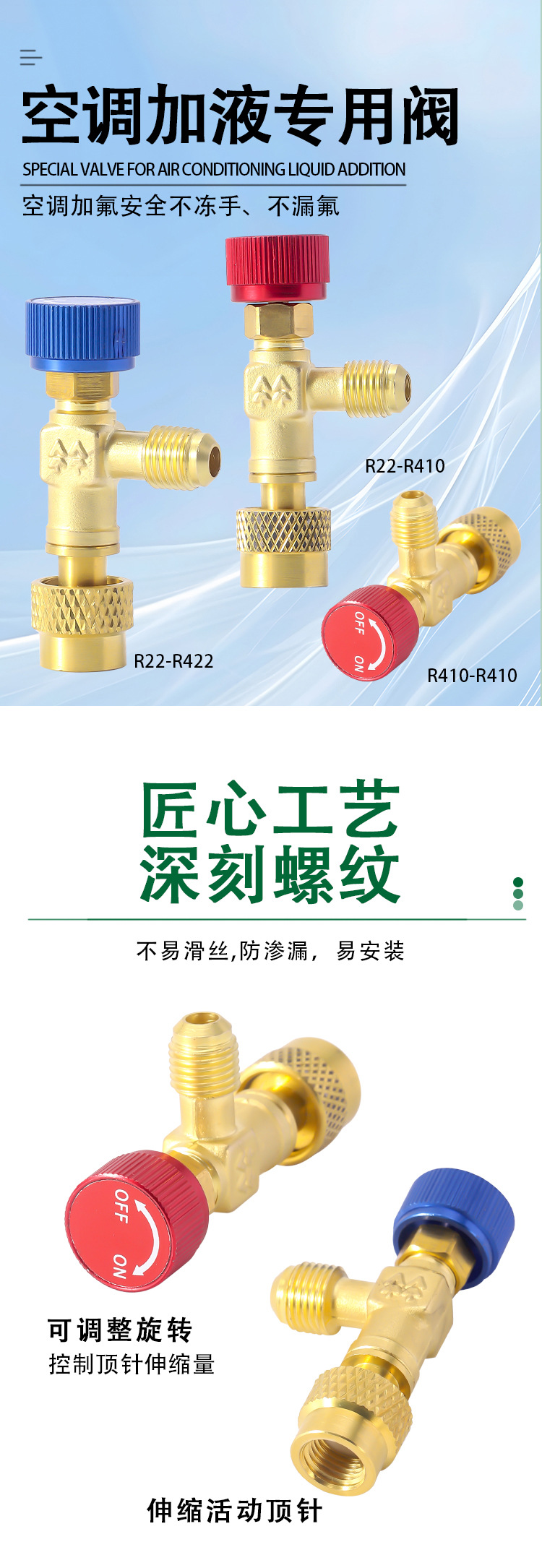 HVAC Charging Safety Valve (Pure Copper, Thickened, Leak-Proof) for R22 R32 R410a R404 R407c Refrigerants