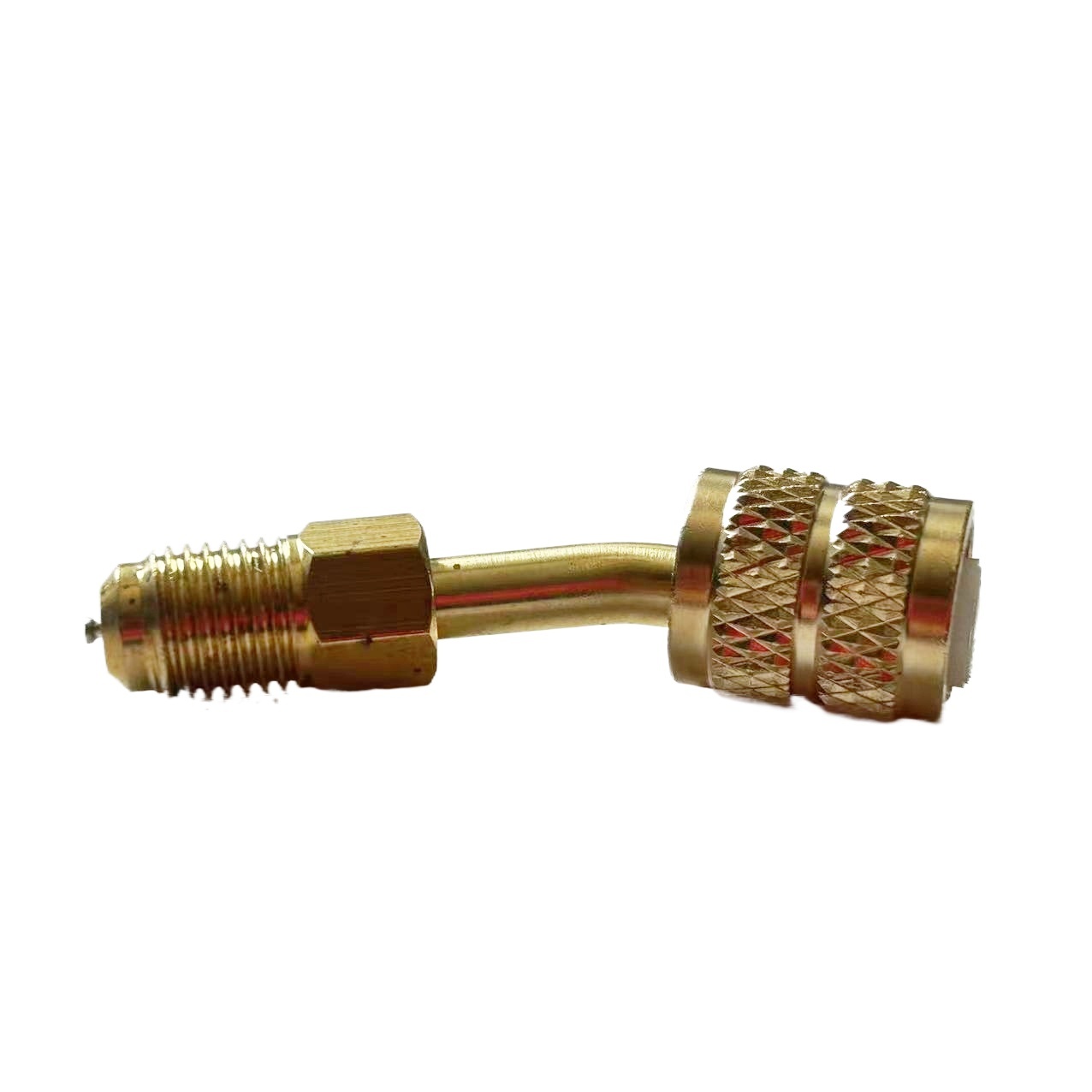 HVAC R410 Adapter 1/4″ to 5/16″ Brass Angled & Straight Valve Core Adapter for R22 / R410 AC Refrigerant Hoses