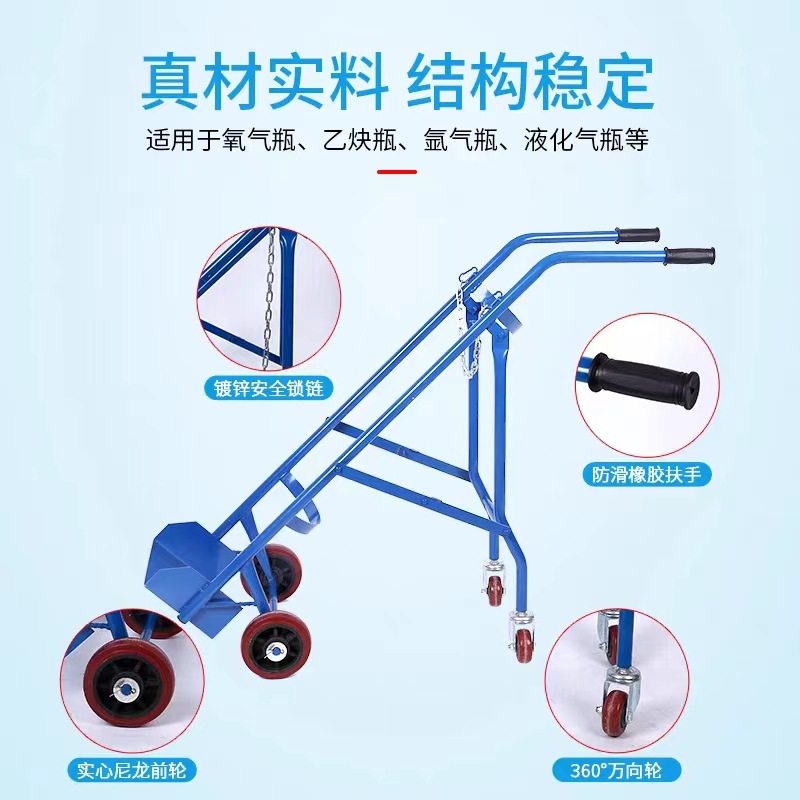 - Key Specs & Performance: Features heavy-duty solid wheels with durable yellow hubs for smooth, stable maneuverability, and a secure chain to firmly hold 40L capacity cylinders during transport.