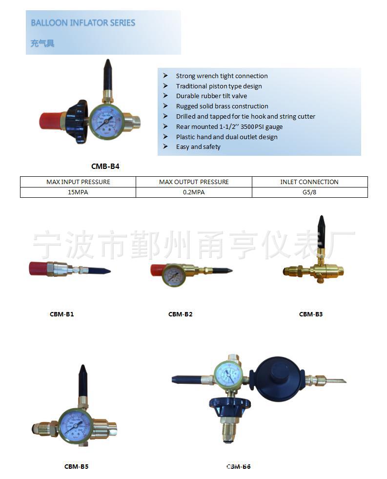 Helium Regulator Pressure Reducer for Balloons, CBM-B6 Model, 0-25 Measurement Range, All-Copper Construction, Made in Ningbo