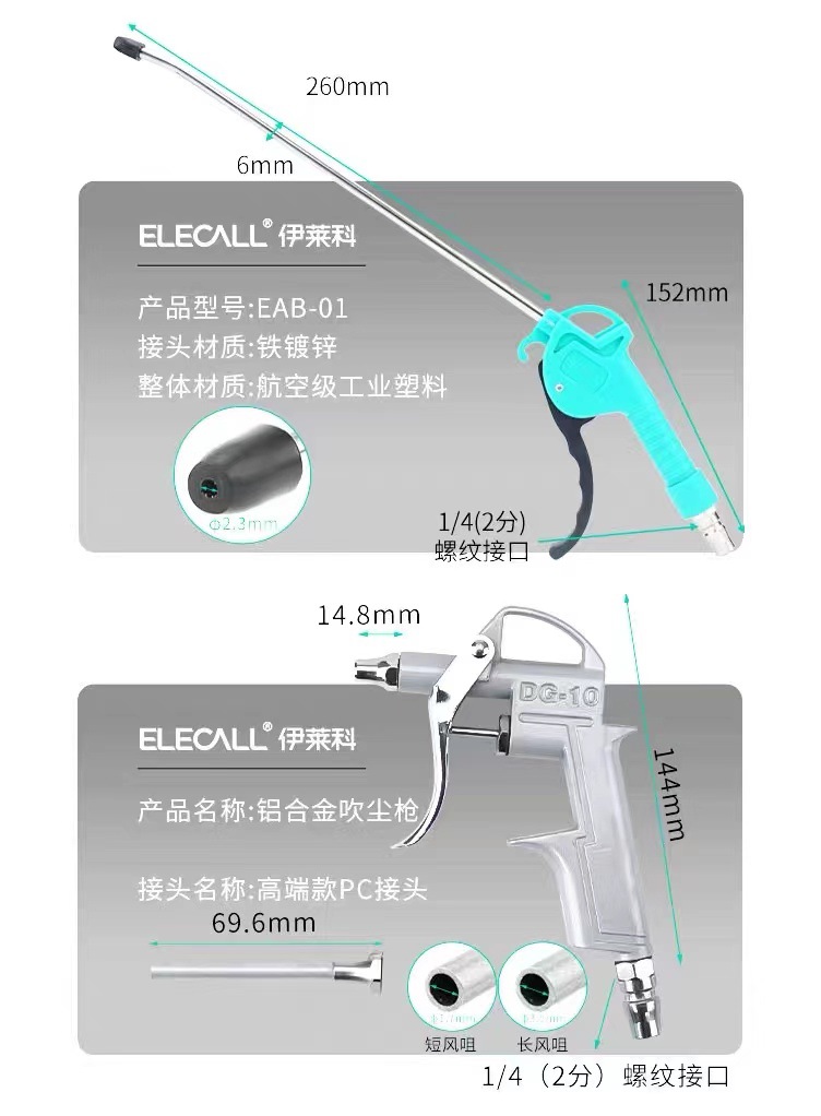 High Pressure Air Blow Gun DG-10 with Long Nozzle for Industrial Dust Removal and Cleaning