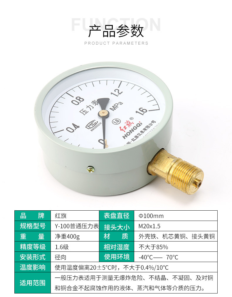 - Wide Compatibility: 홍기 (HongQi) Y-100 Pressure Gauge is designed for various HVAC systems, compatible with M20*1.5 connections and an accuracy class of 1.6, replacing HY72602500632.