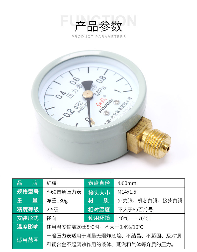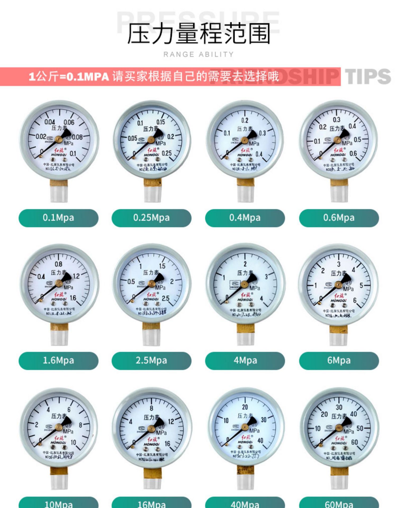 - What You Get: One HongQi Y-60 Radial Pressure Gauge. Enjoy peace of mind with nationwide warehousing, joint guarantees, and worry-free after-sales service.