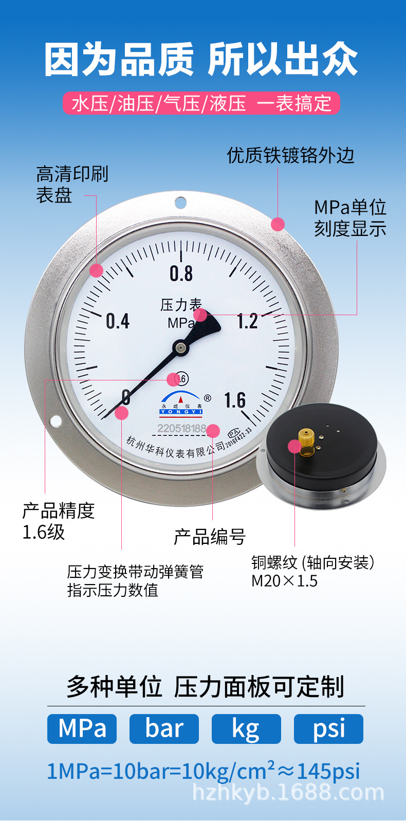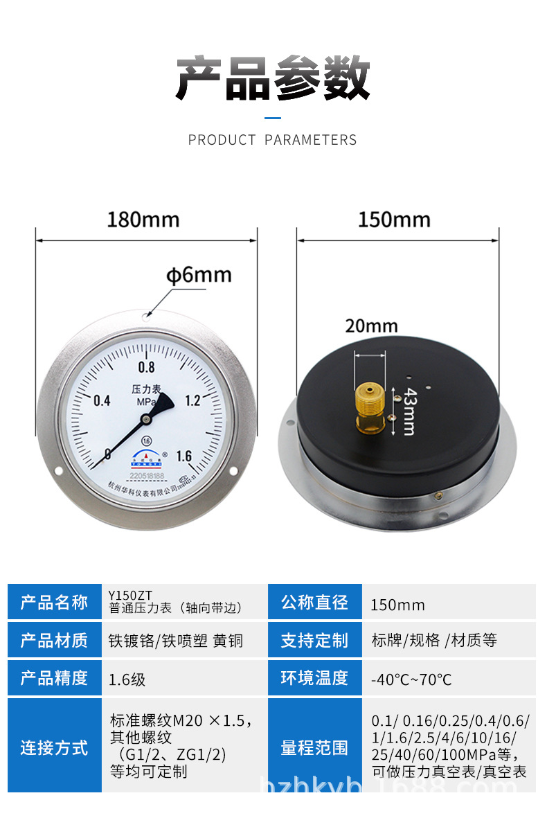 - Wide Compatibility: Designed by Hongke/Yongyi, model Y150ZT, this axial pressure gauge is universally compatible with water pressure, hydraulic systems, oil pressure, and pneumatic systems.