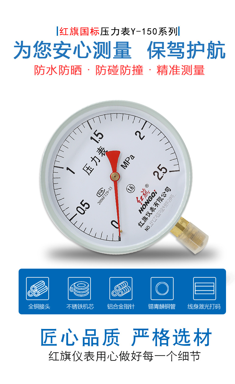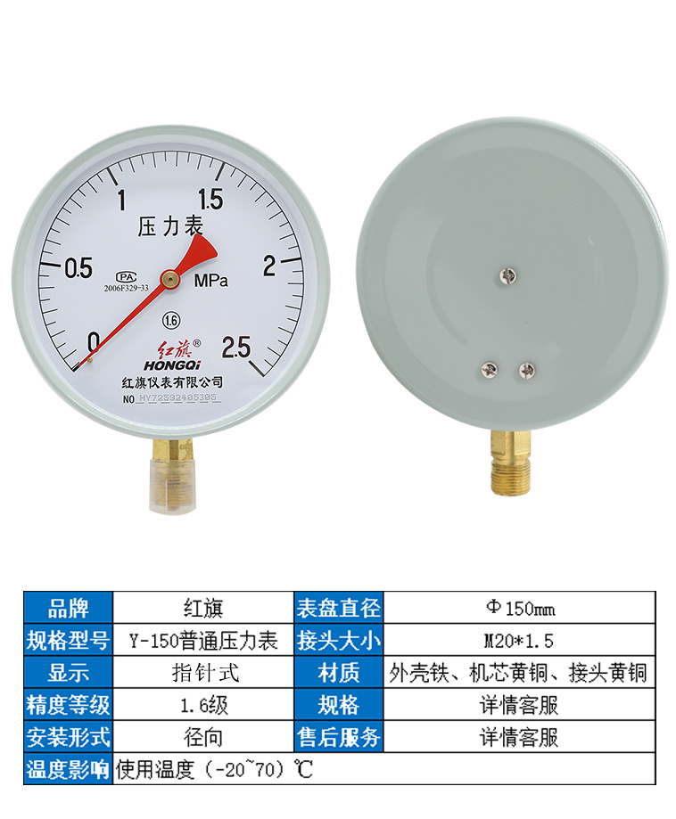 - Durable Hongqi Y-150/YZ-150 Pressure Gauge: Crafted for precision and longevity, ensuring reliable performance across various industrial applications.