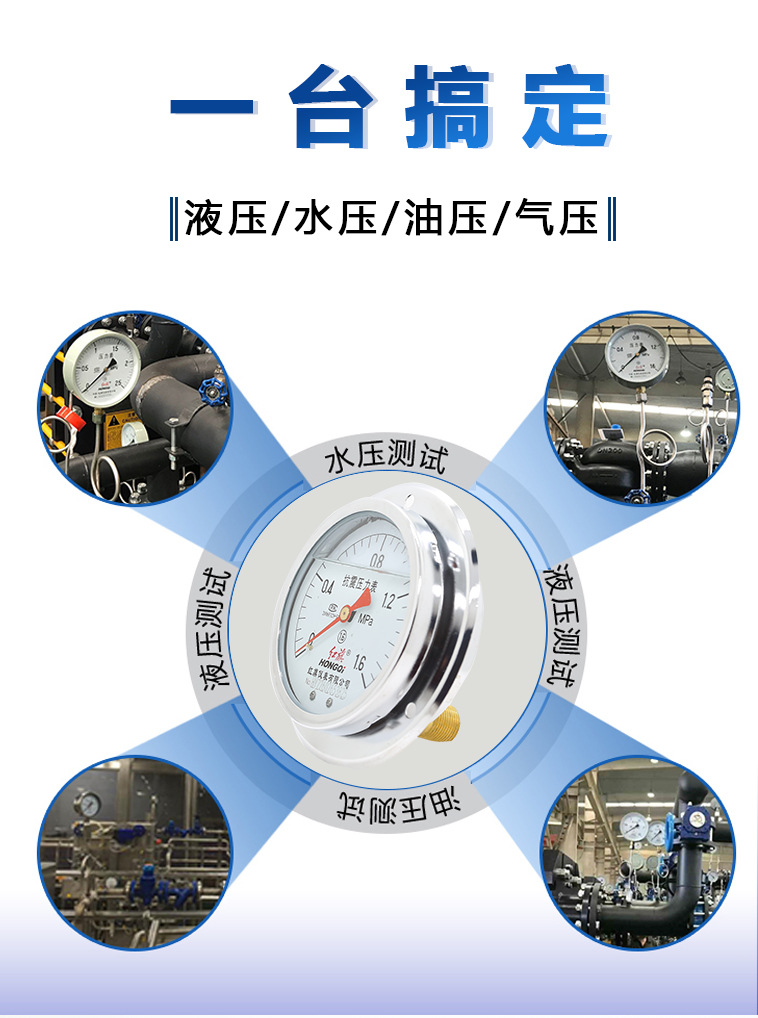 Hongqi Y-60 Pressure Gauge Water Pressure Vacuum Negative Pressure Meter for HVAC Firefighting Tire Pressure