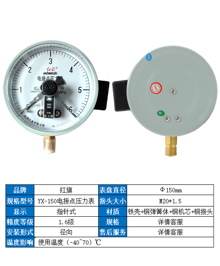 Hongqi YX-150 Electric Contact Pressure Gauge Vacuum Pressure Table for Water Pump Control
