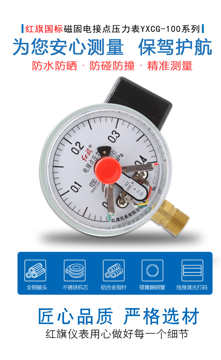 Be the first to review “Hongqi YXCG-100 YXCGK-100 Shaking Resistant Oil-Filled Magnetic Contact Pressure Gauge Manometer” Cancel reply
