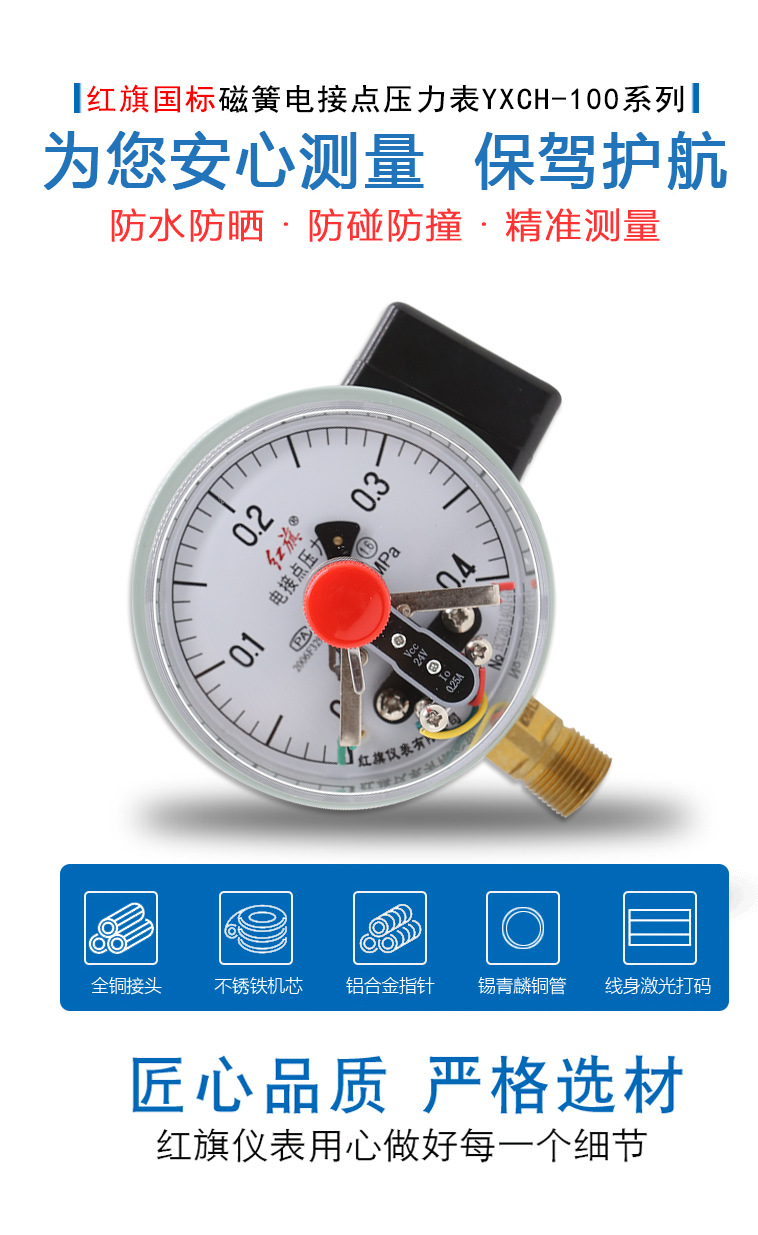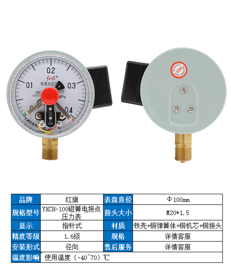 Hongqi YXCH-100/YXCHK-100 Seismic Oil-Filled Magnetic Reed Pressure Gauge