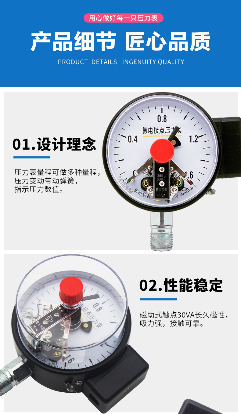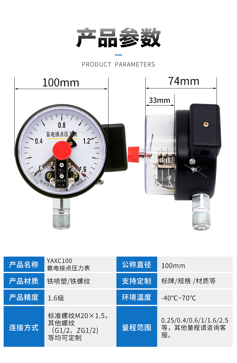 - Key Specs & Performance: Features a 1.6MPa measuring range, 380V/220V contact voltage, and 30VA contact power, providing precise and reliable pressure monitoring for ammonia applications.
