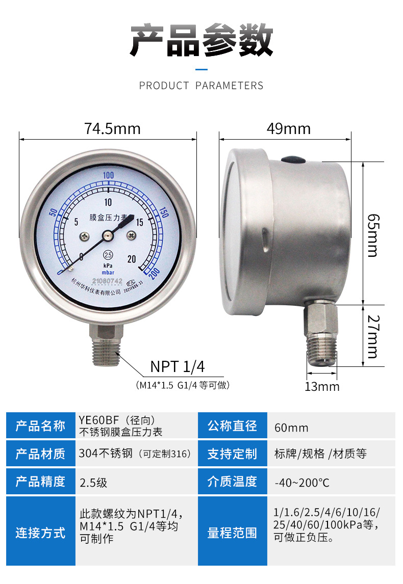 - What You Get: Includes one Huake YE60BF stainless steel diaphragm pressure gauge, backed by our commitment to factory direct quality and comprehensive specifications.