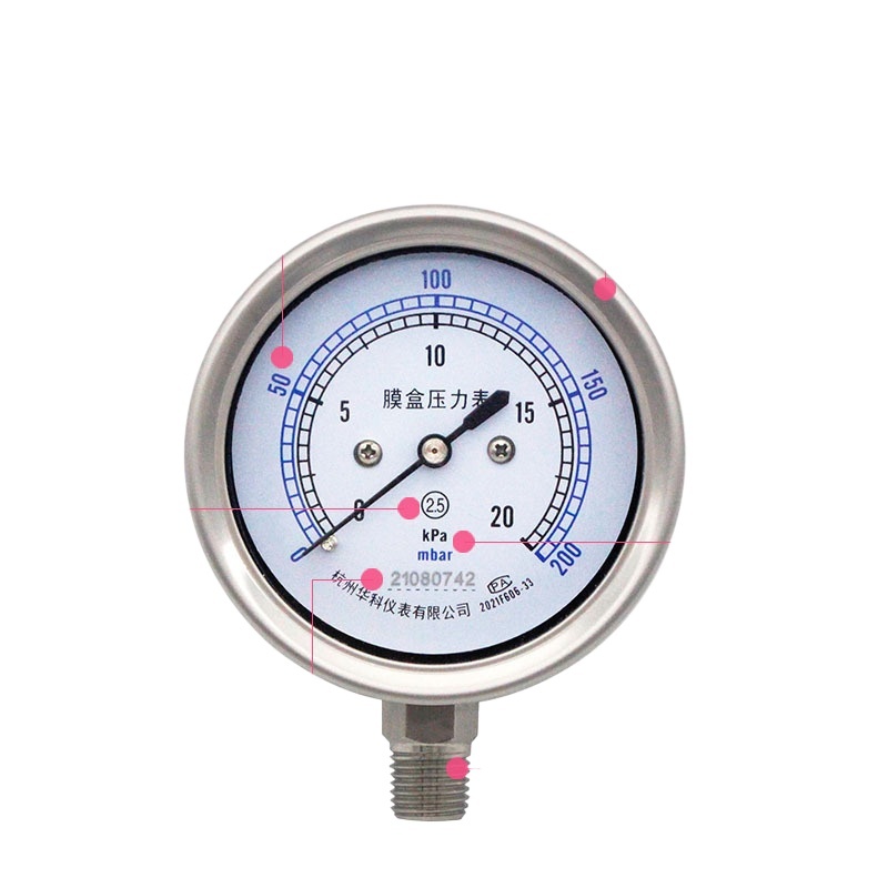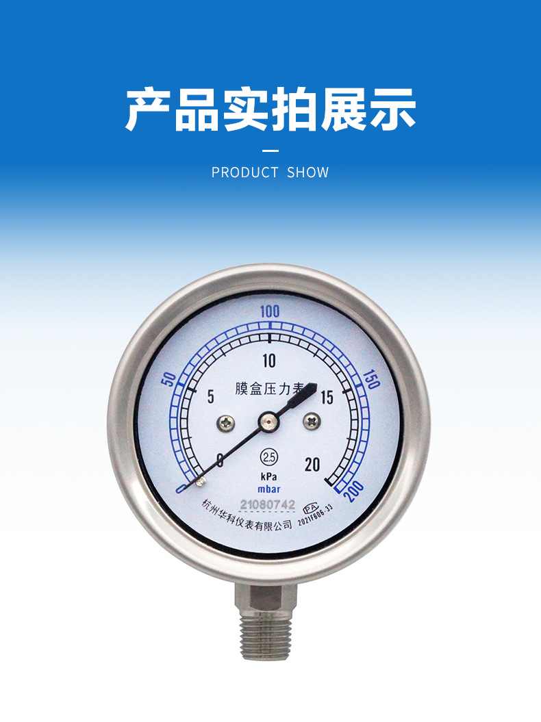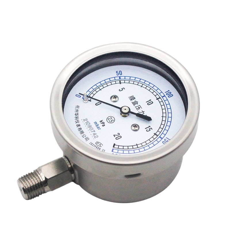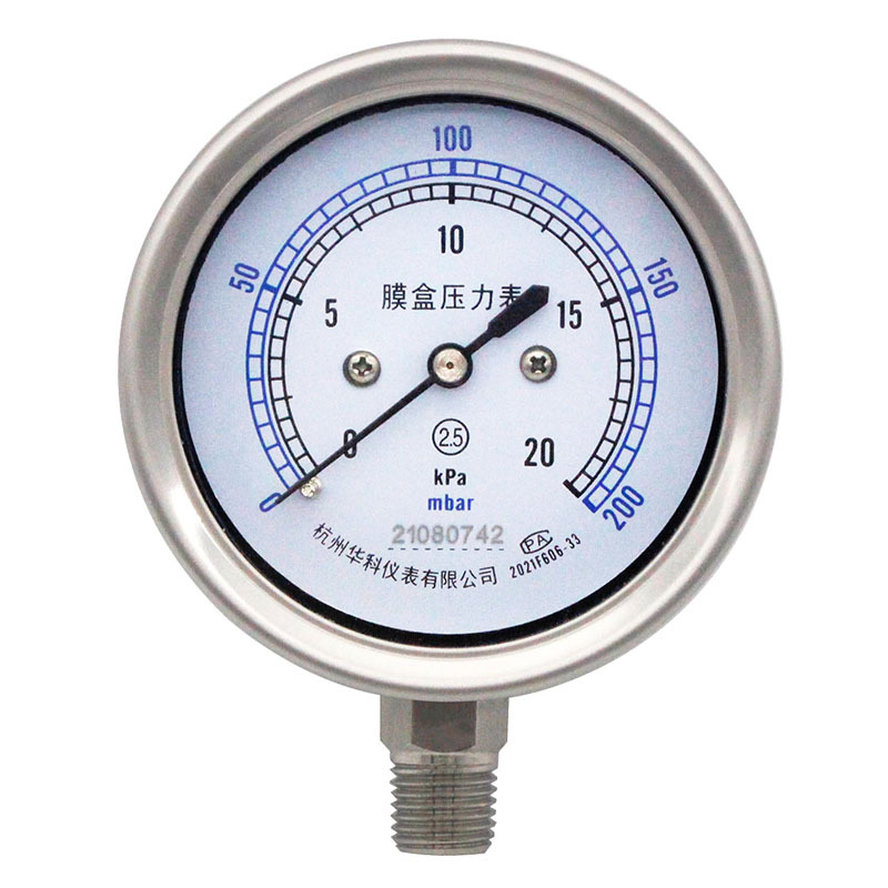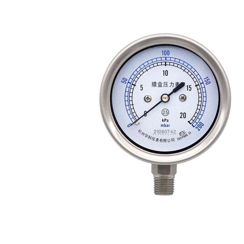 Huake YE60BF Stainless Steel Diaphragm Pressure Gauge (60mm Radial, 0-6 kPa) for Water Oil Gas HVAC Systems replaces 21080742