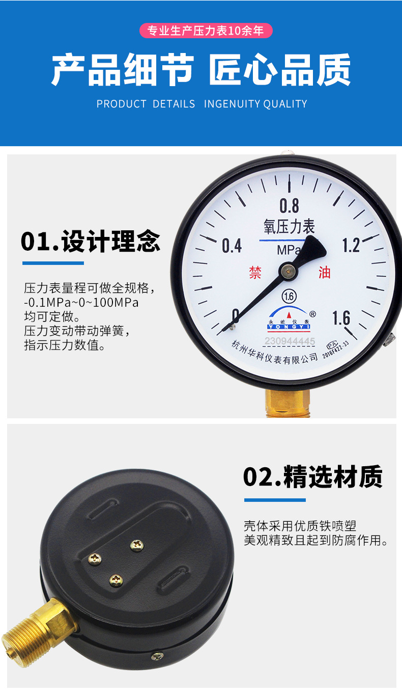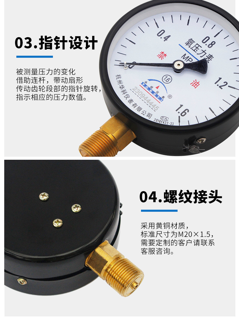 - Quality & Durability: Manufactured by Huake Instrument Co., Ltd., this gauge is explicitly marked as “禁油” (non-oil type), making it ideal for applications where oil contamination must be strictly avoided, ensuring measurement accuracy and system safety.