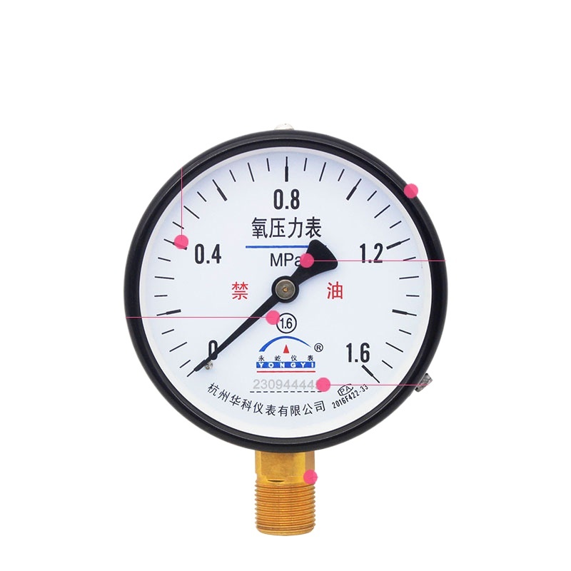 Huake YO100 Radial Oxygen Pressure Gauge (Non-oil Type) for High Purity Medical Oxygen Systems, 0-1.6 MPa, 100mm Dial