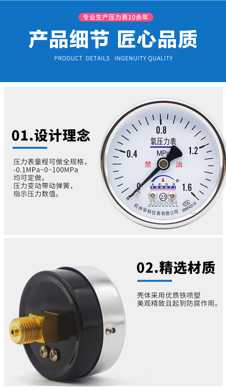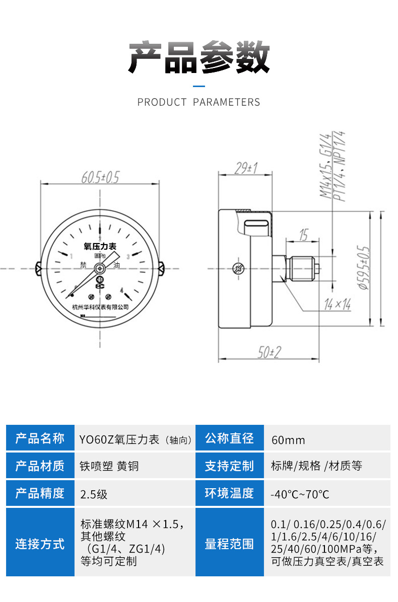 - Key Specs & Performance: Axial type YO60Z pressure gauge with a measuring range of 0-1.6MPa and 2.5 accuracy class for precise readings.