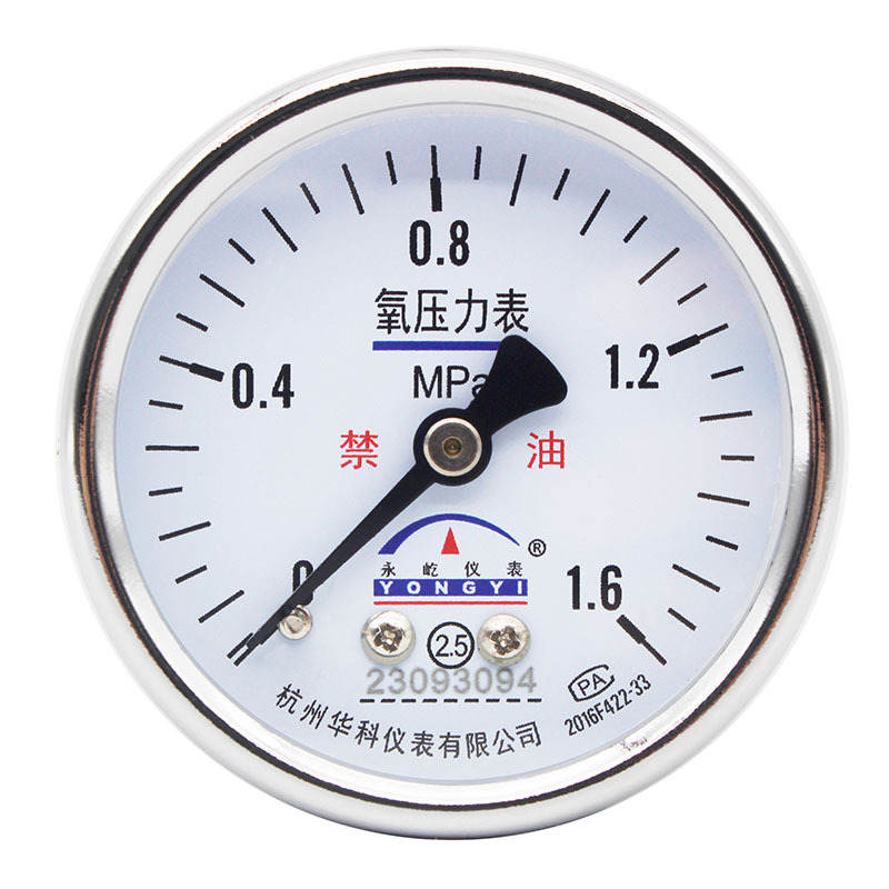 Huake YO60Z Axial Oxygen Pressure Gauge (0-1.6MPa, 60mm Diameter) for High Purity Oxygen Systems