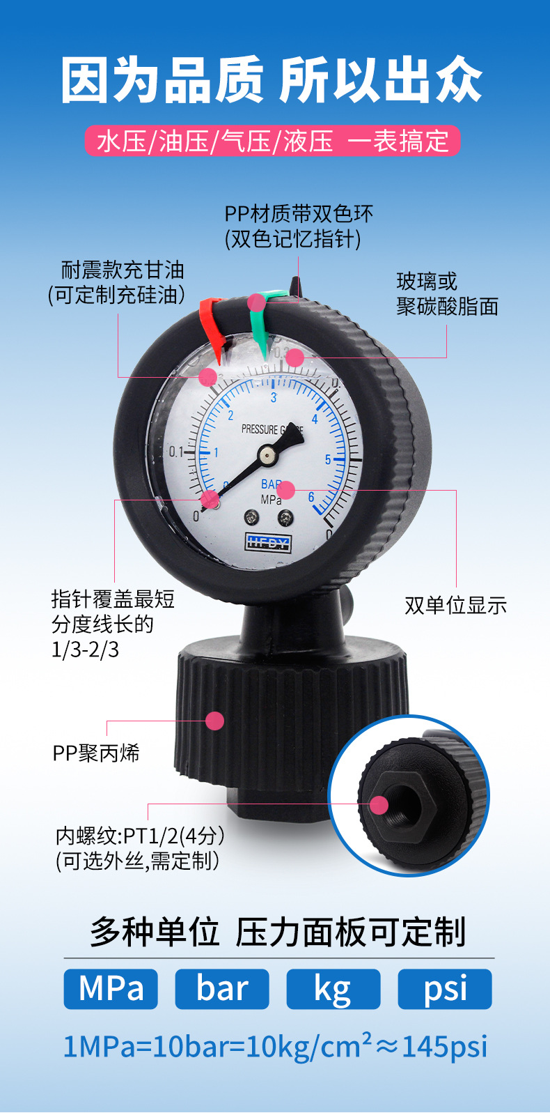 - What You Get: Includes one Huake Yongyi YN60PP PP diaphragm pressure gauge, offering reliable and accurate pressure readings for your specific application needs.