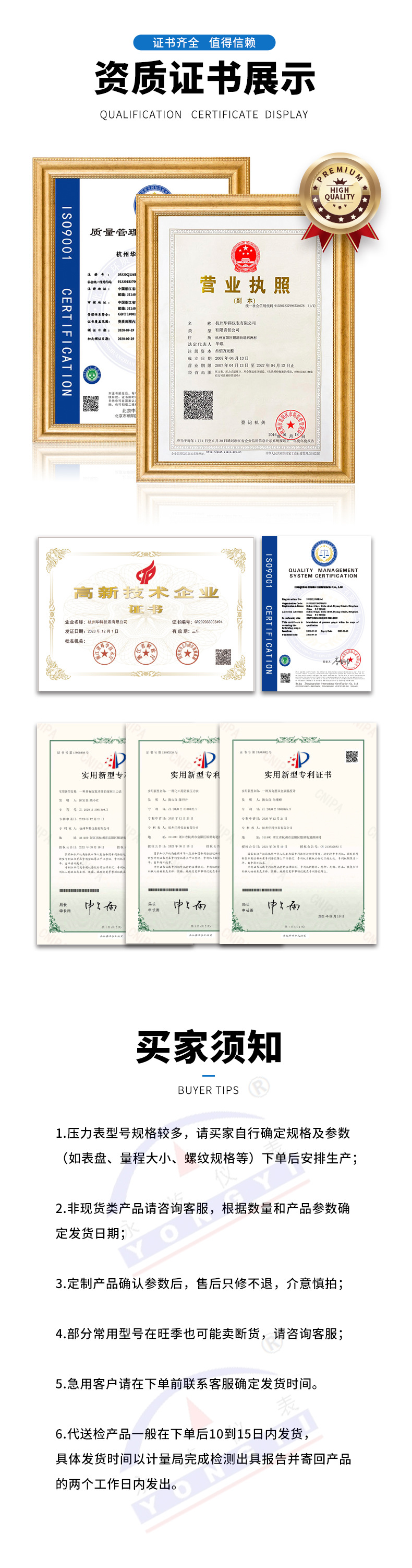 Hongqi Y-60 Pressure Gauge Water Pressure Vacuum Negative Pressure Meter for HVAC Firefighting Tire Pressure