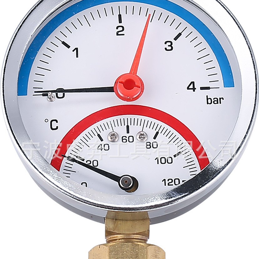 - Key Specs & Performance: Accurately measures pressure from 0-10 Bar and temperature from 0-120°C, providing critical data for system monitoring and maintenance, indicated by its precision dial face.