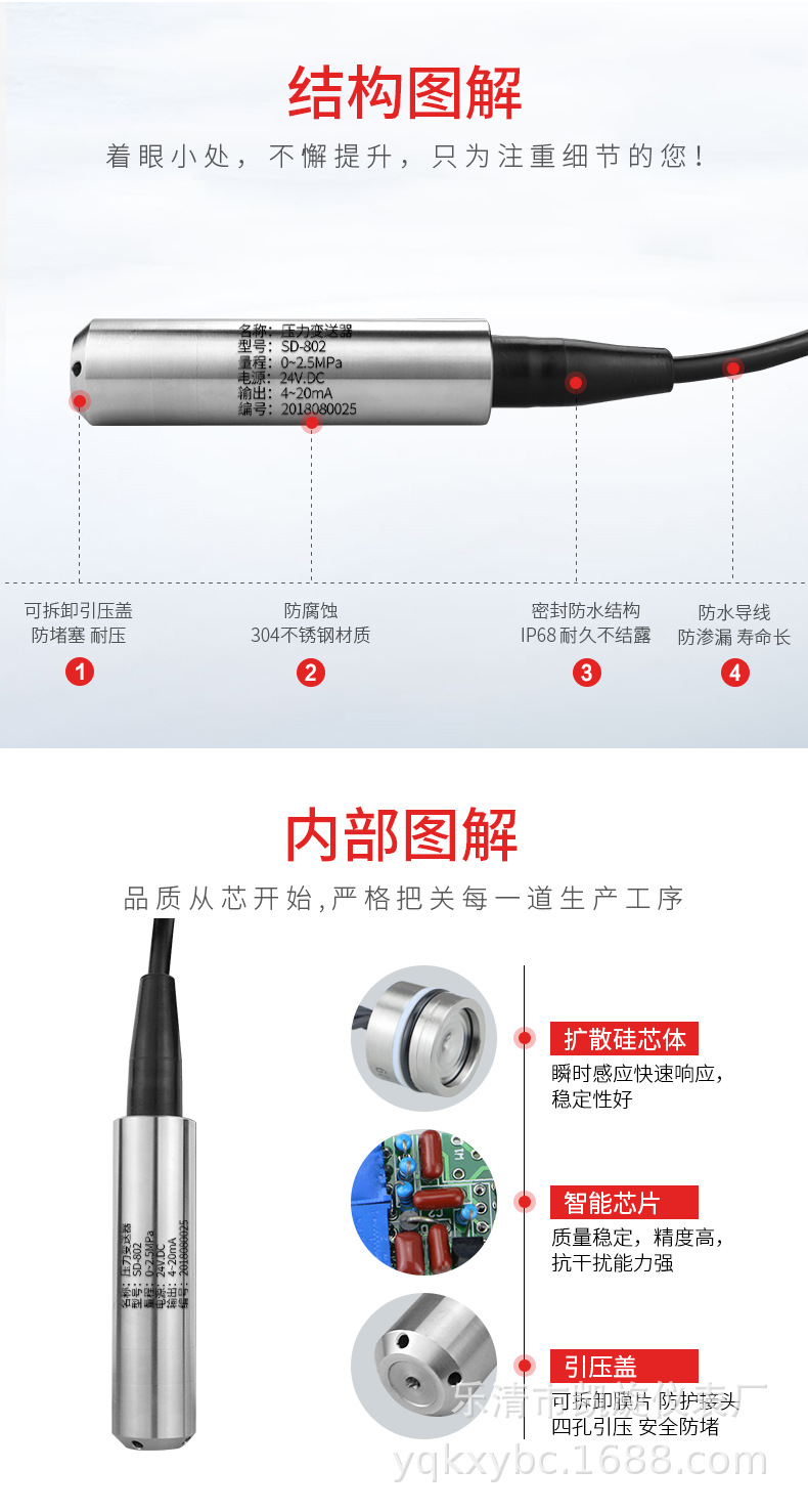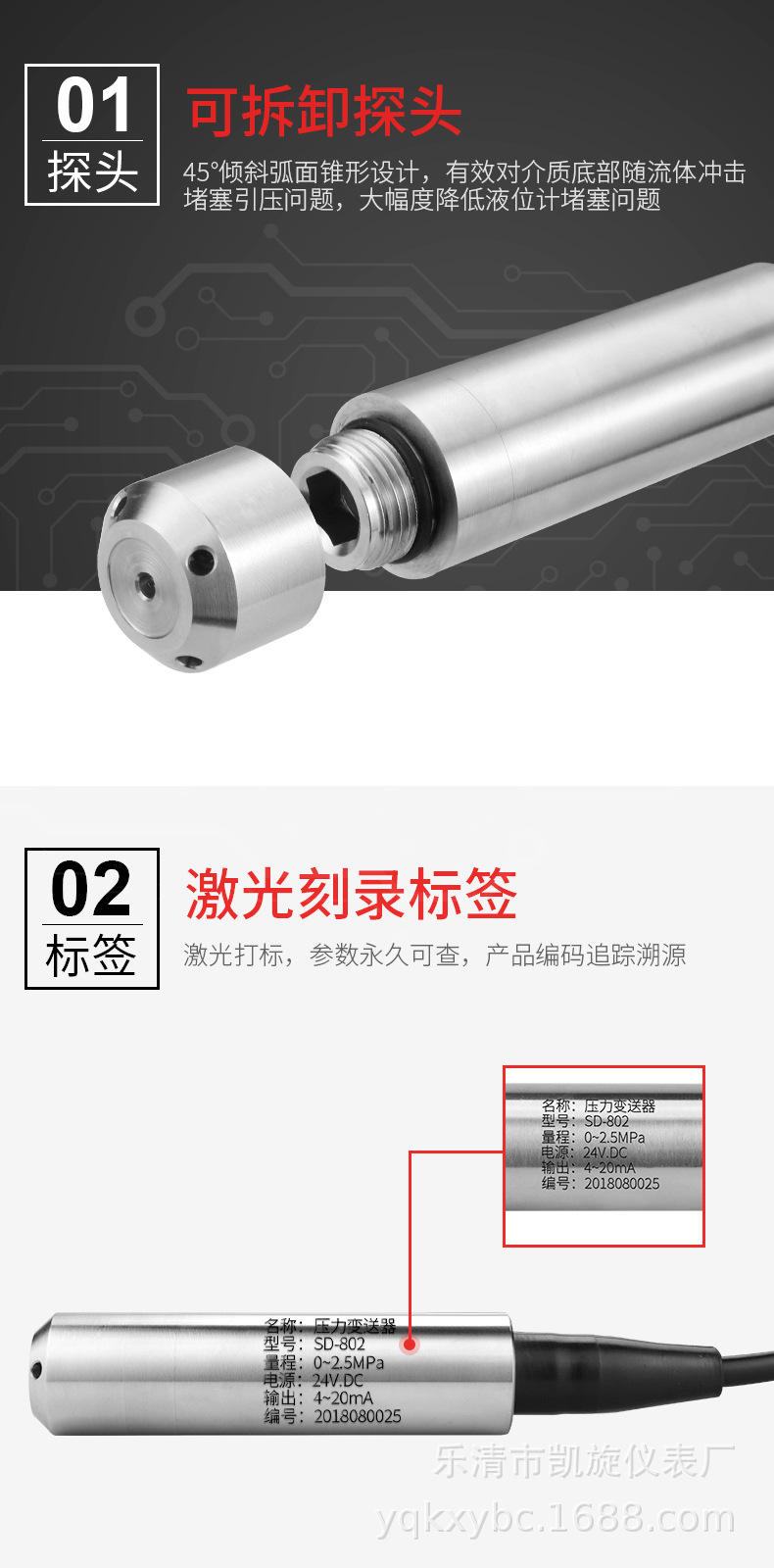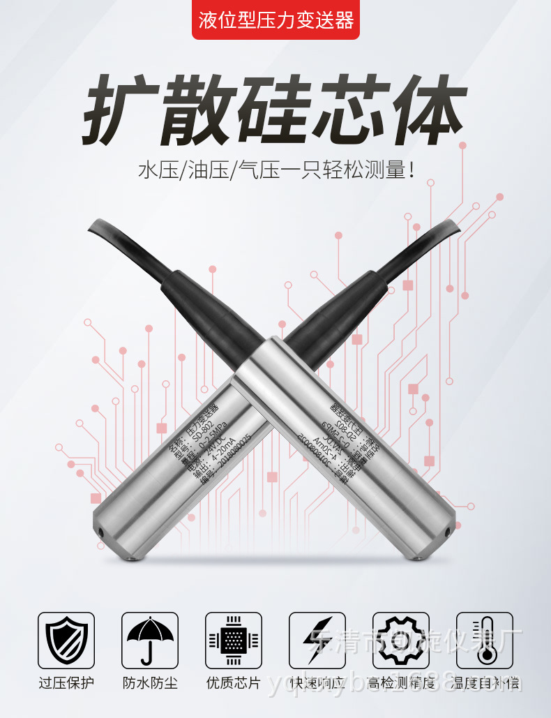 - What You Get: One high-performance immersible level transmitter model SD-802. Features include intelligent chip technology, laser marking, over-pressure protection, and waterproof design for reliable operation.