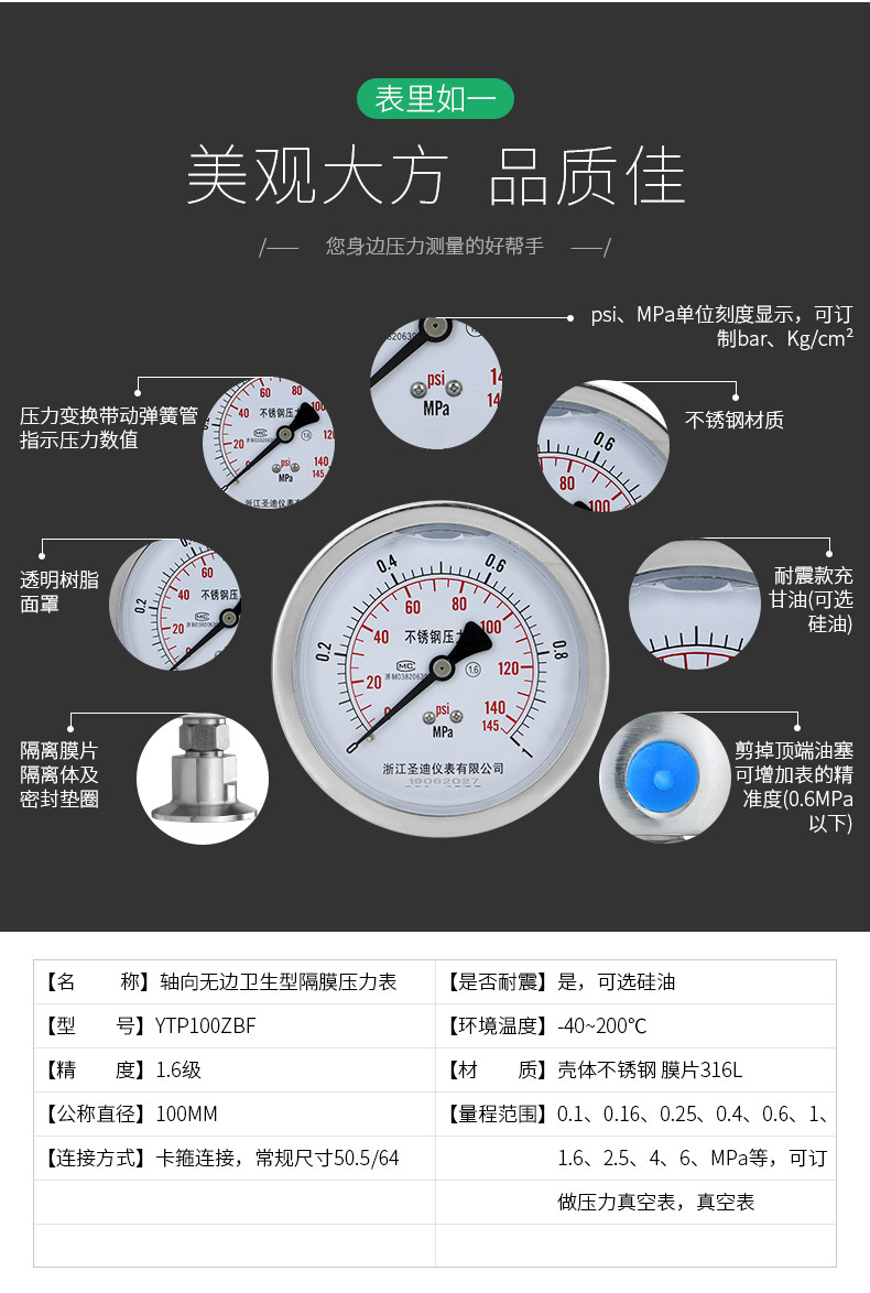 - What You Get: One YTP100ZBF industrial diaphragm pressure gauge, offering exceptional durability and precision for critical pressure monitoring in your facilities.