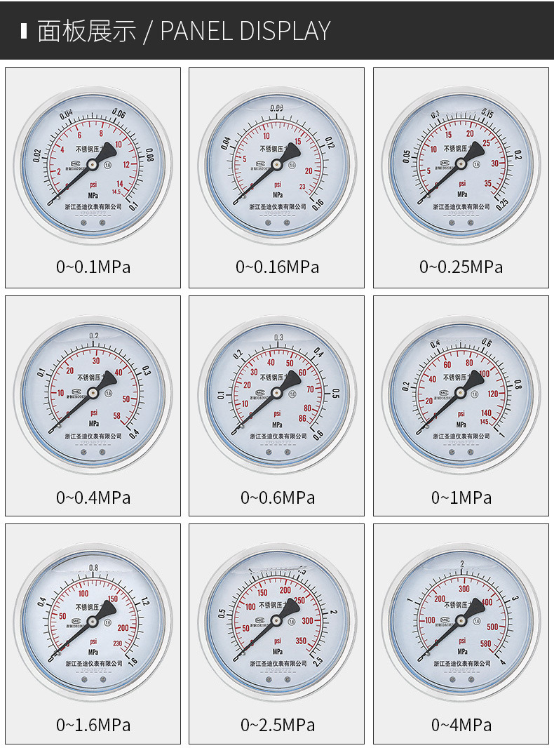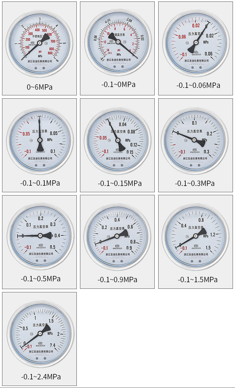 - Wide Compatibility: Specifically designed for industrial applications requiring precise pressure measurement, suitable for various pressure ranges from 0-0.1MPa up to 0-6MPa and -0.1-0MPa up to -0.1-15MPa.