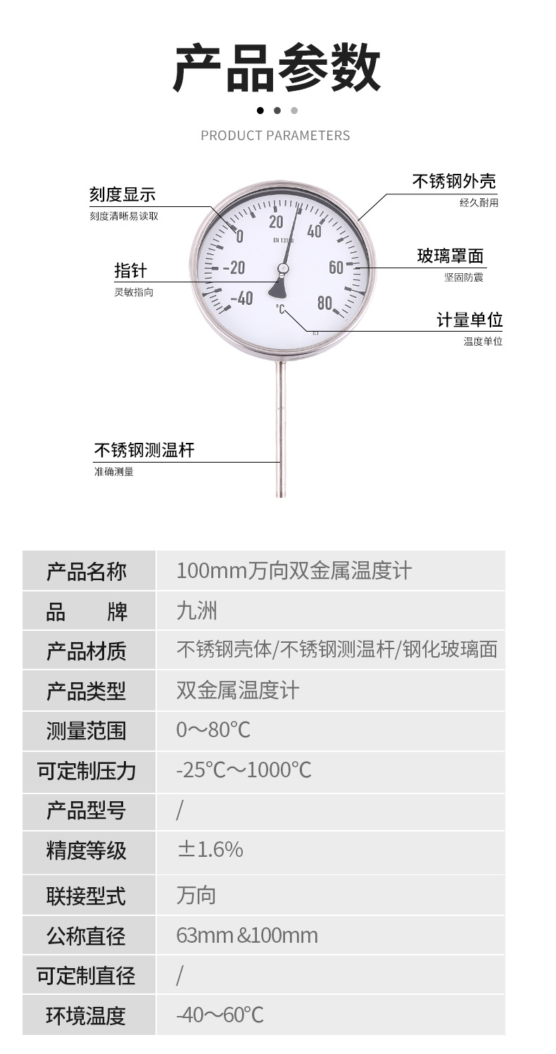 - Key Specs & Performance: 100mm nominal diameter, measuring range from -40 to 80°C with ±1.6% accuracy, providing precise temperature readings for critical processes.