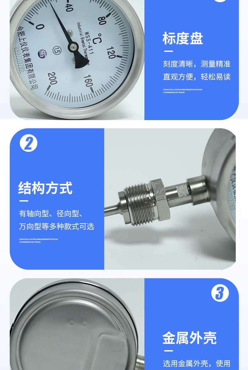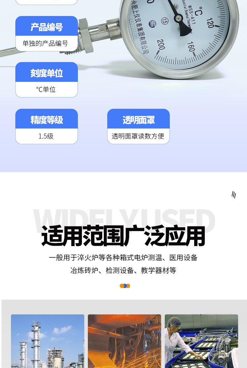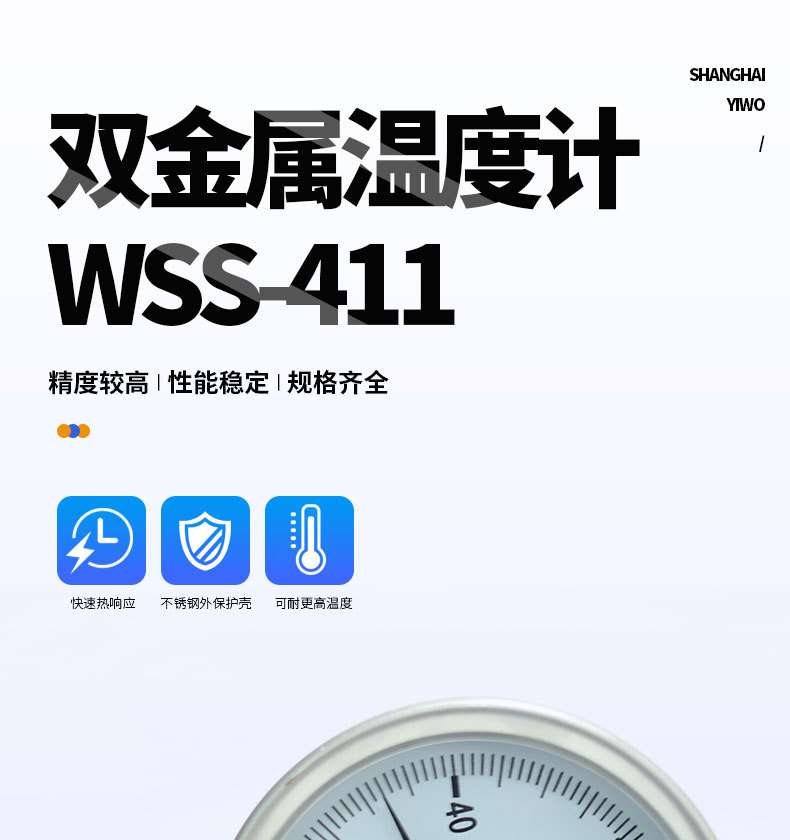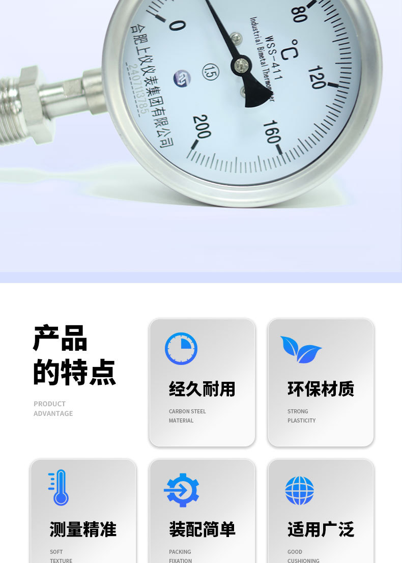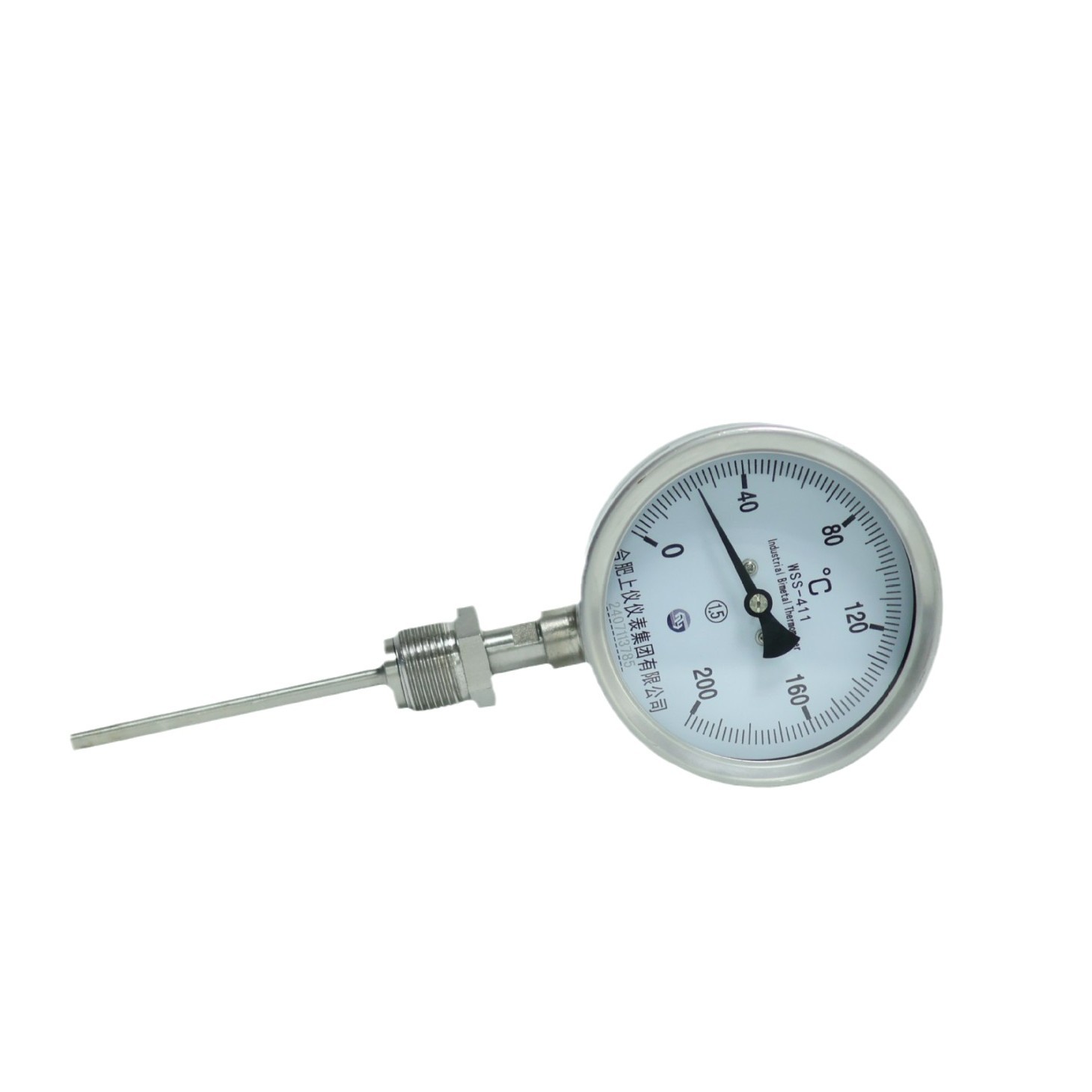- Key Specifications: Model WSS-411 industrial bimetal thermometer with a temperature range of 0-300°C, ensuring accurate and reliable temperature measurement.