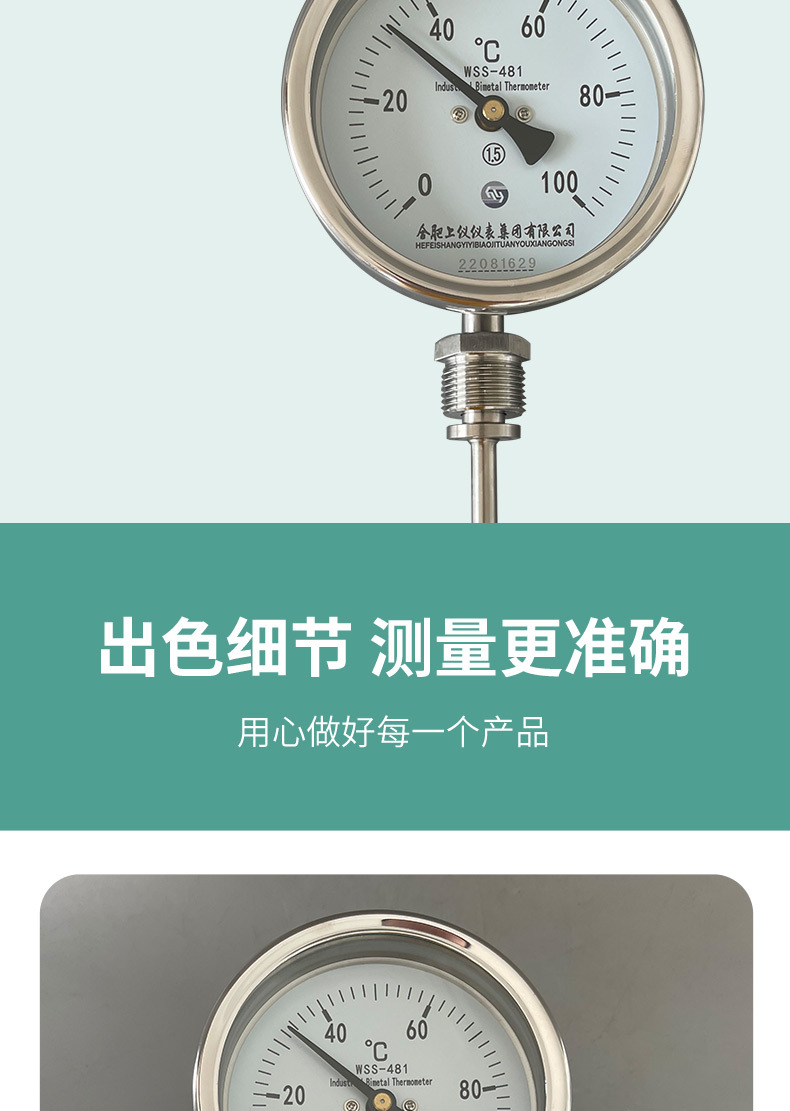 - Wide Compatibility: Designed as a universal type bimetal thermometer, model WSS-481, suitable for various industrial applications requiring precise temperature measurement up to 100 or 150 degrees Celsius.