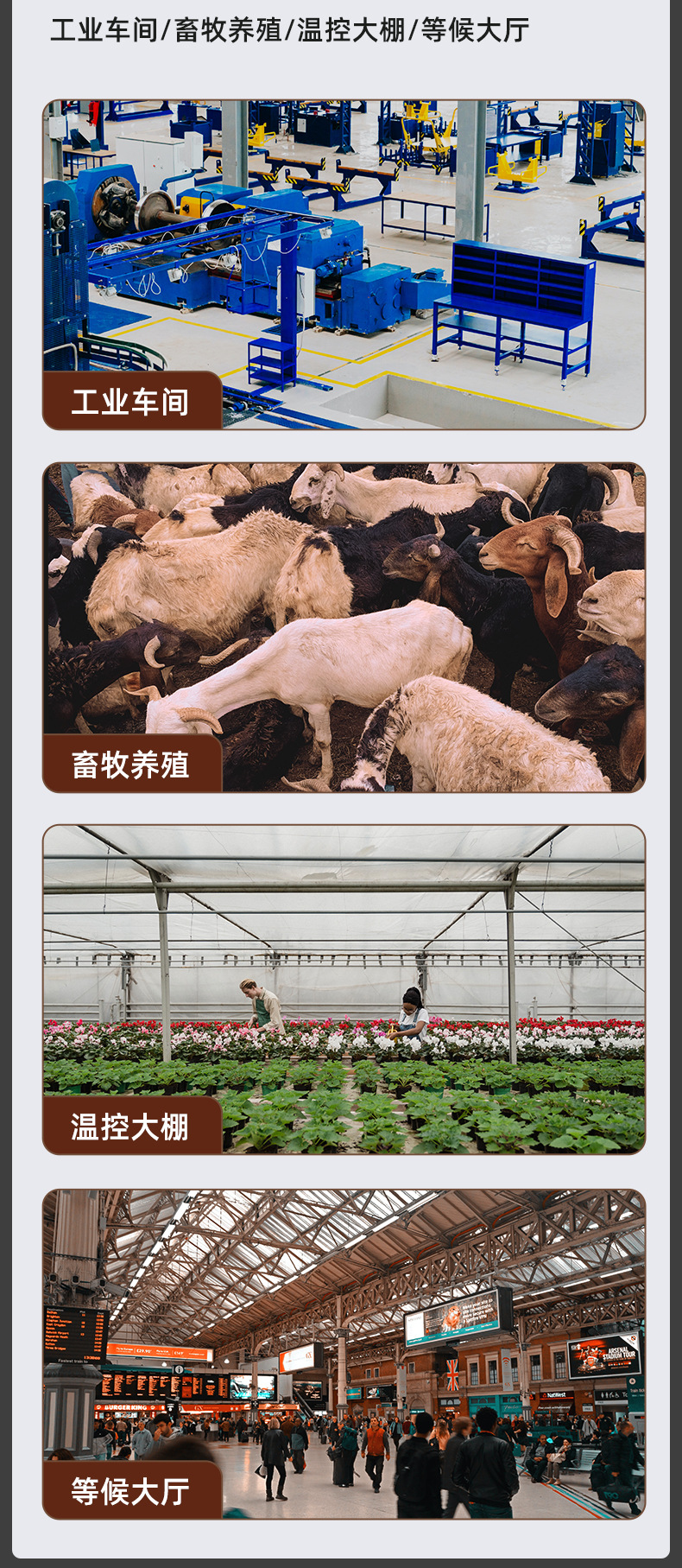 - Wide Compatibility: Versatile electric air heater fan suitable for livestock breeding, industrial workshops, and greenhouses, ensuring optimal temperature control.