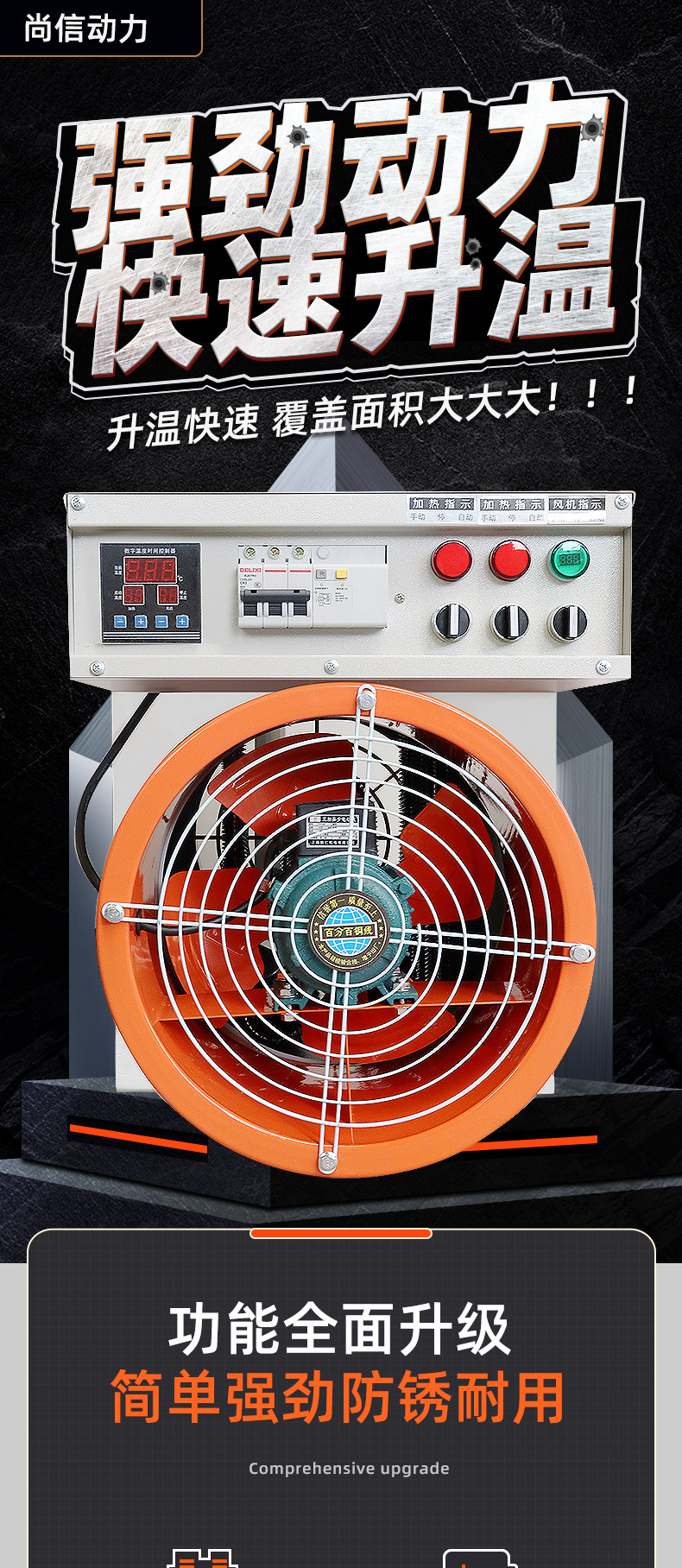 - Key Specs & Performance: Available in a wide range of power options (5kW to 50kW) and voltage (220V/380V) to quickly and efficiently raise ambient temperatures while being energy-saving.