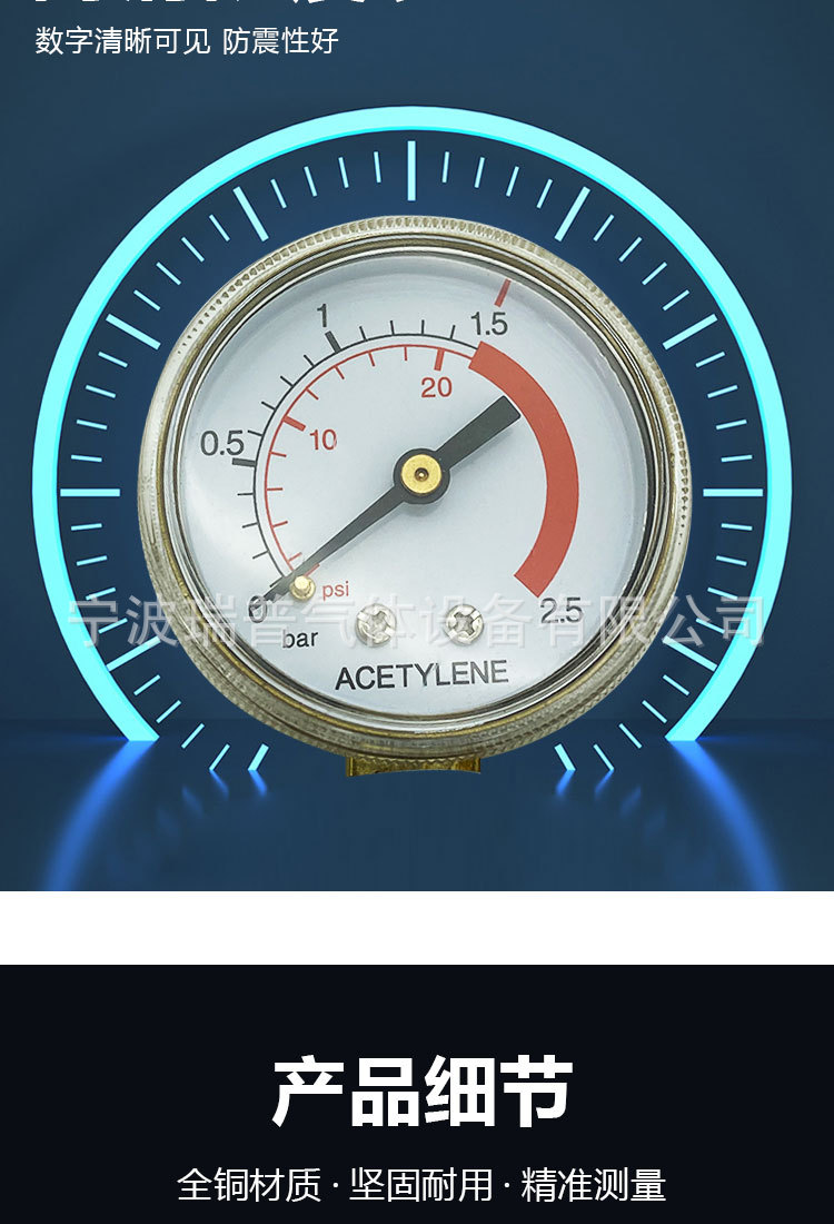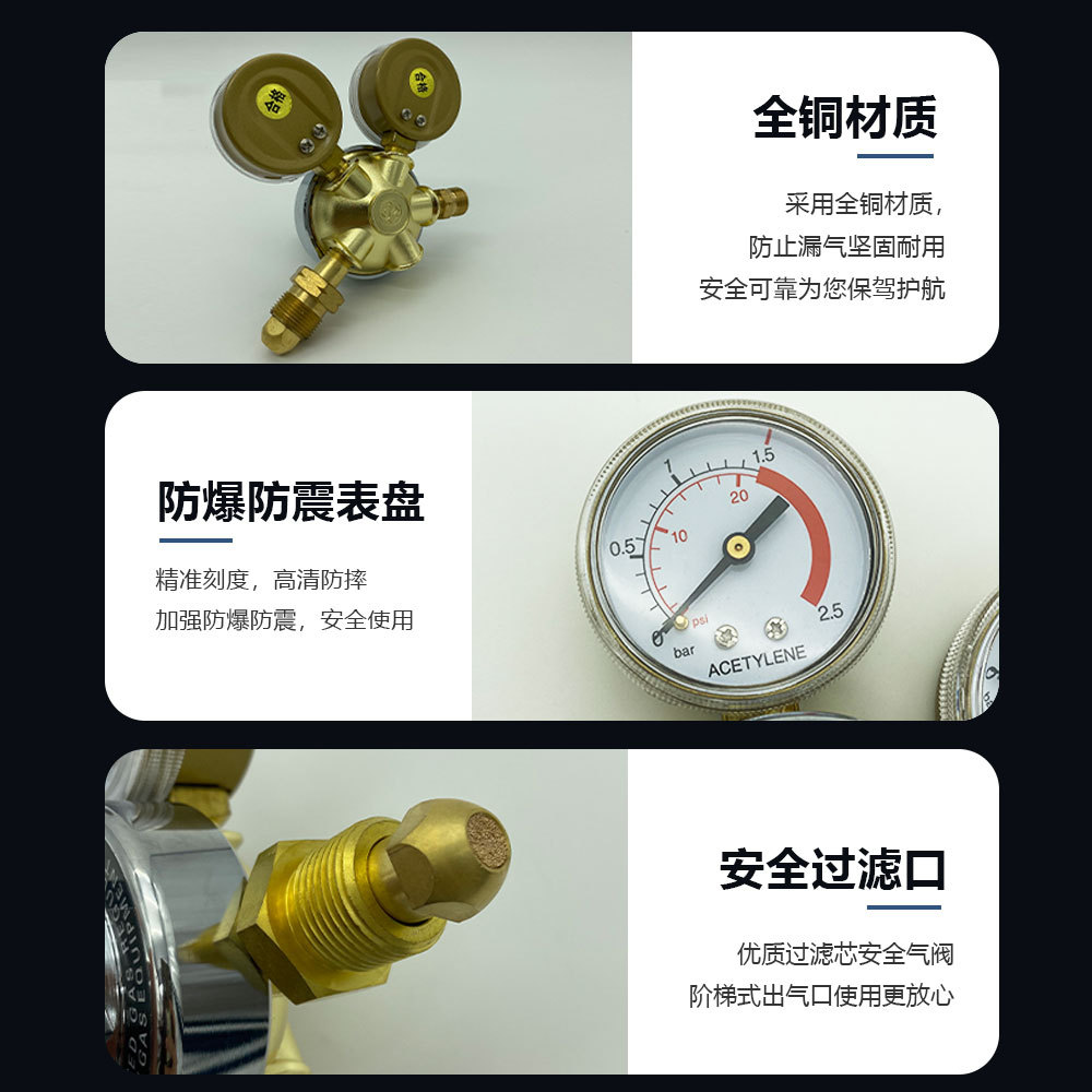 Industrial Grade Oxygen Acetylene Pressure Reducer Gauge Full Copper Anti-Shock Regulator for Welding and Cutting