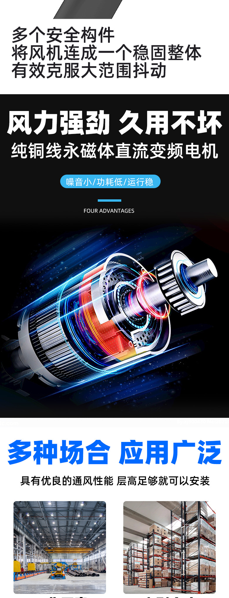 - Compatibility: Designed for large industrial workshop and plant environments, ideal for cooling and ventilation.