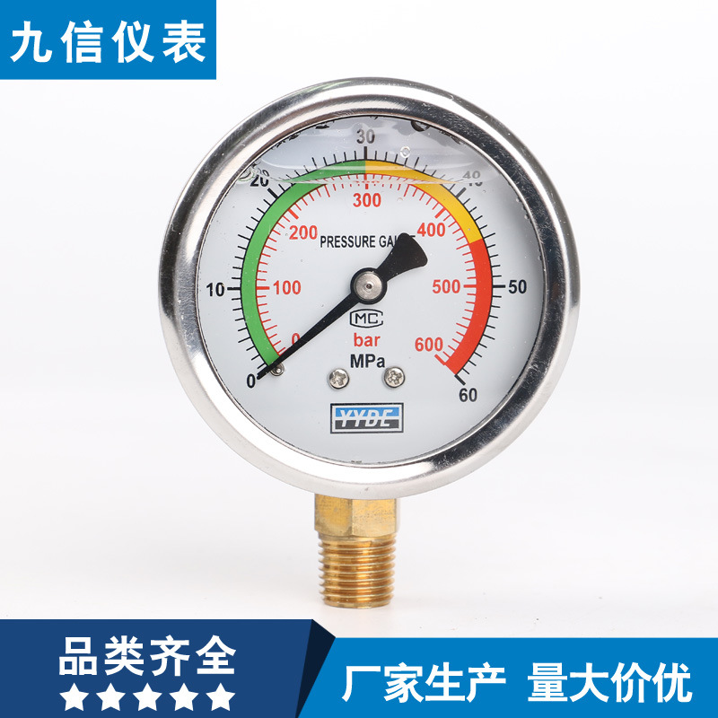 Hongqi YY-60 Acetylene Pressure Gauge, M14*1.5 Connection, 2.5 MPa Precision, 60MM Diameter
