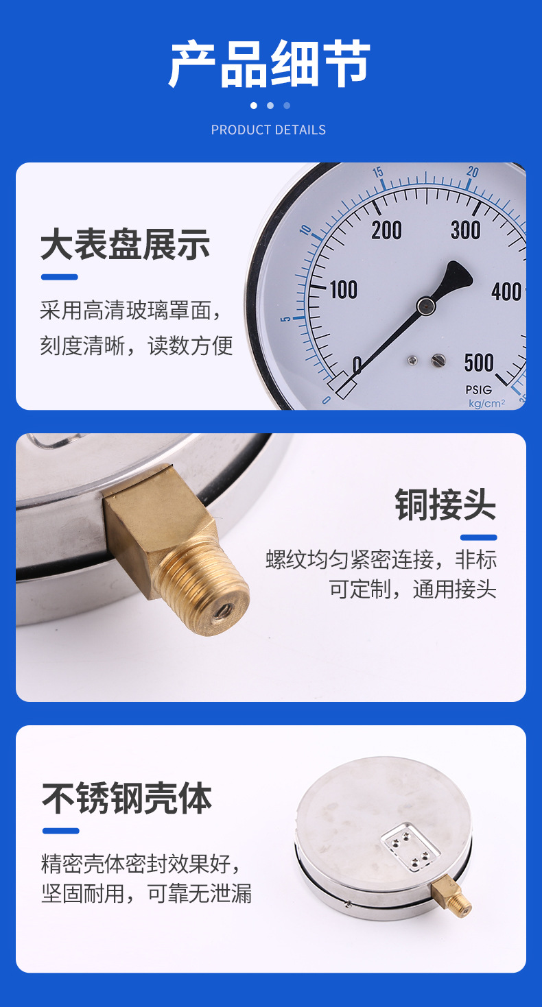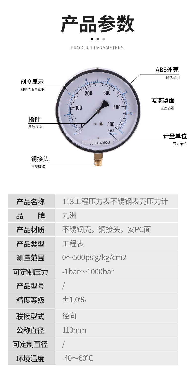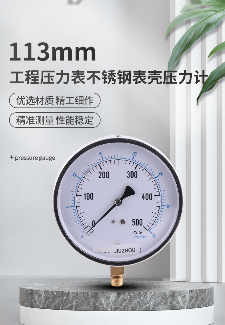 - Wide Compatibility: Designed for various industrial applications, compatible with 九洲 systems. Perfect for replacing your old 113mm radial pressure gauge.