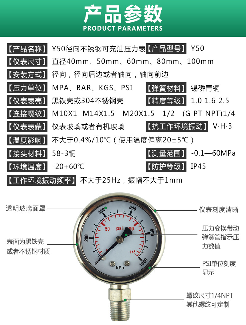 - Easy Installation: Equipped with a radial threaded connection (Y50 model) for straightforward and secure installation on various equipment.
