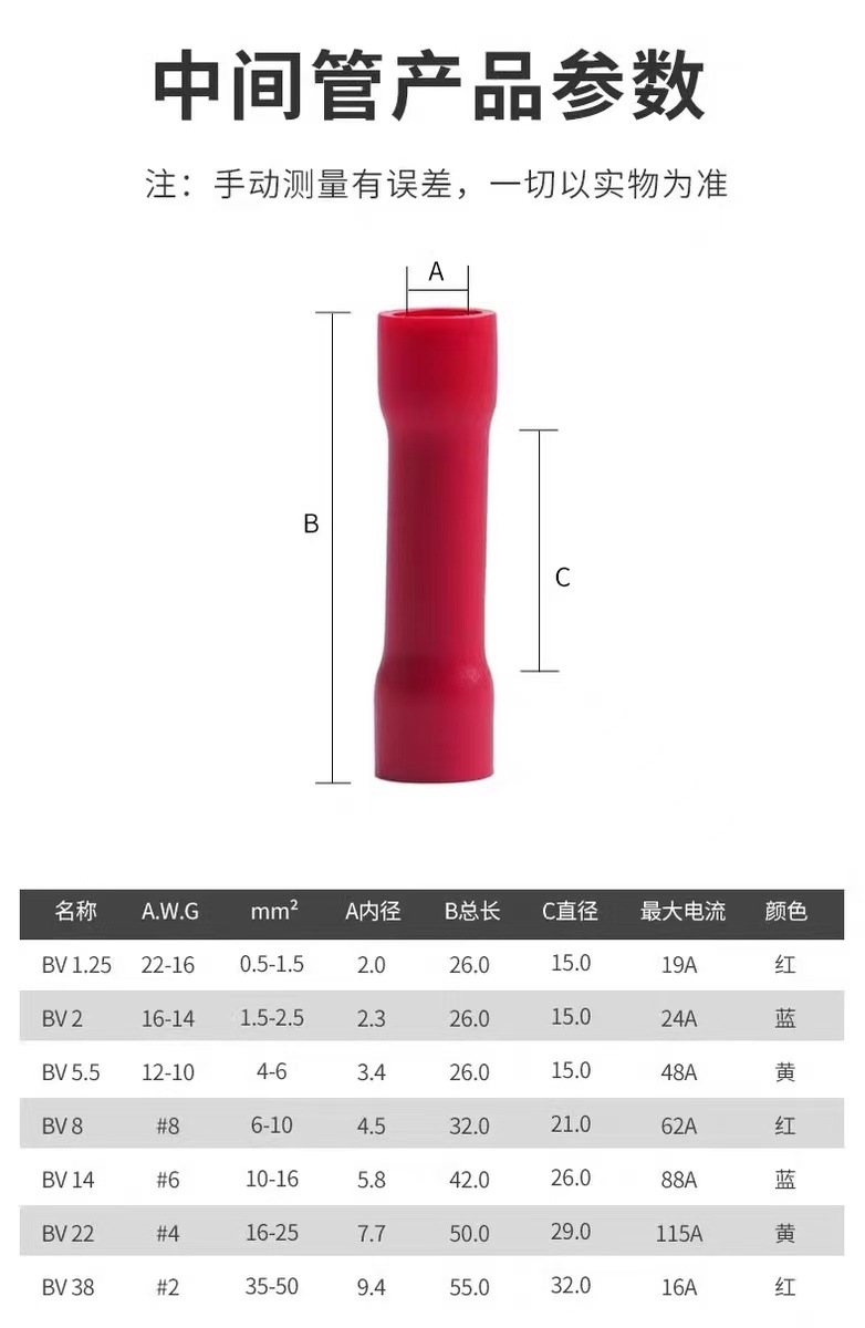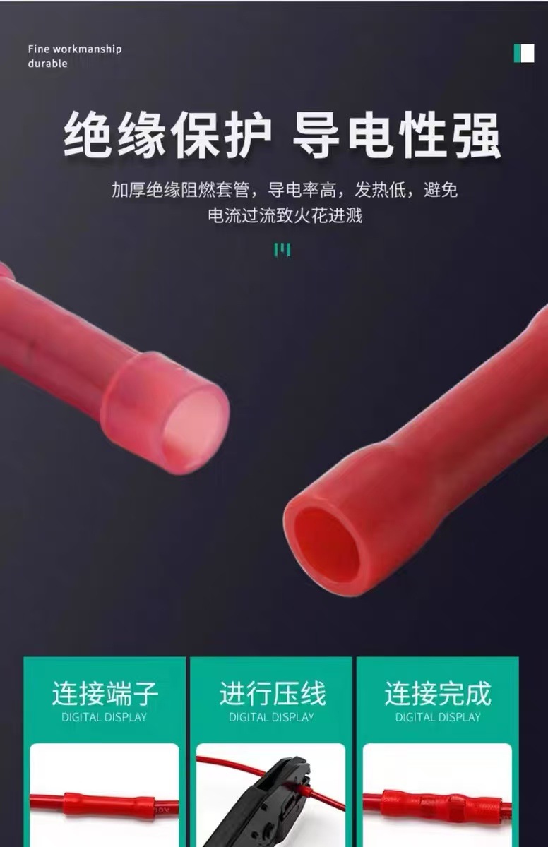 - Wide Compatibility: ELECALL BV series insulated butt connectors are suitable for various wire sizes, ensuring strong and reliable electrical connections.