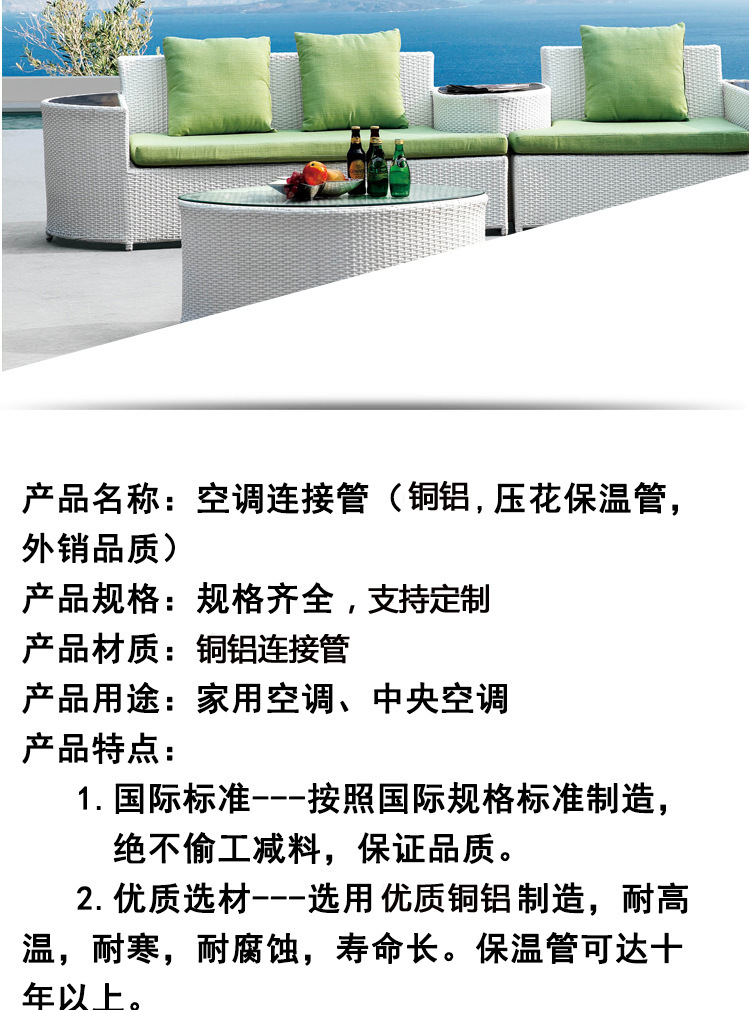 Embossed Insulated Copper Pipe Set (1-5P, Thickened) for HVAC Systems, Replaces Standard AC Line Sets