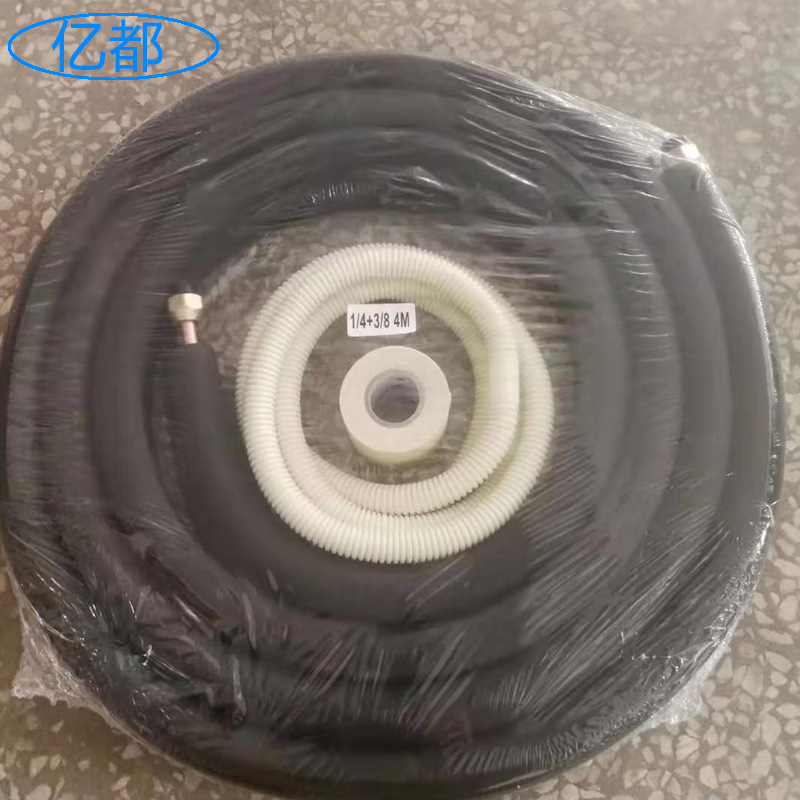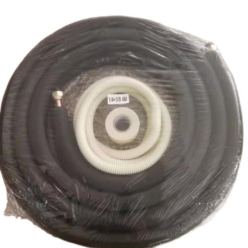 Pre-insulated Pure Copper AC Line Set (6.35mm*0.6mm / 12.7mm*0.6mm) with Black Rubber Insulation & Quick Connectors for Home HVAC Systems