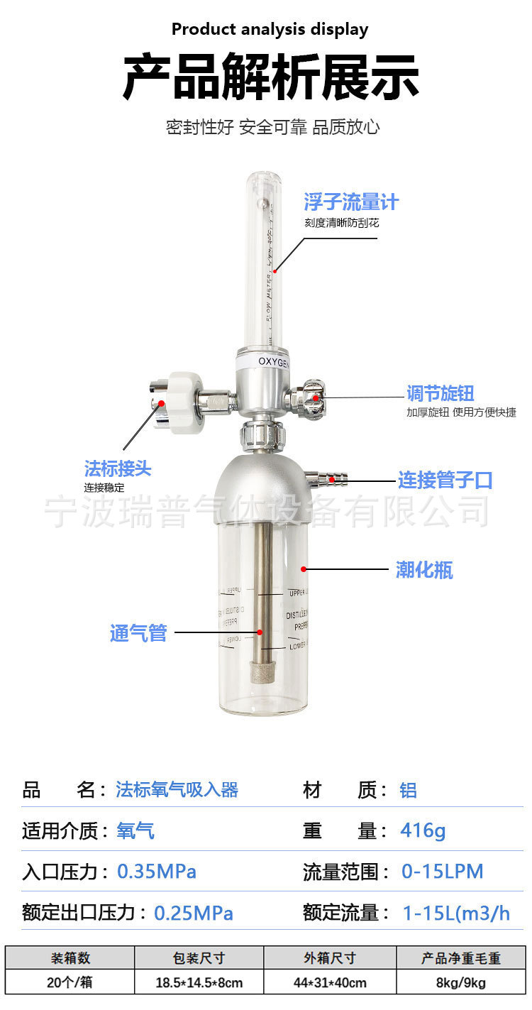 Integrated French Standard Oxygen Inhaler with Humidifier Bottle Wall-Plug English Standard Oxygen Supply Accessories