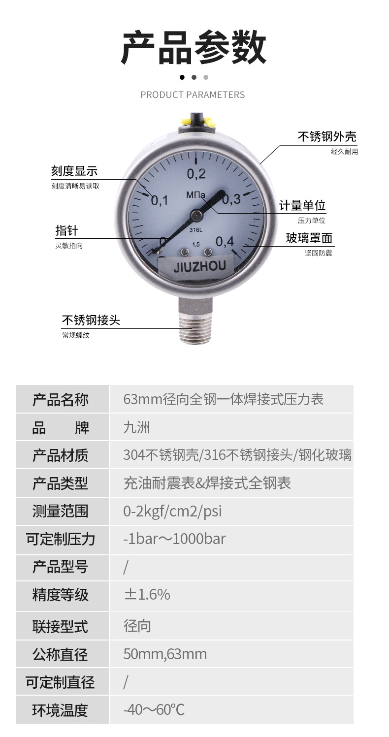 - What You Get: One 63mm Radial All-Steel Integrated Welding Pressure Gauge with oil-filled shock resistance. Comes with our commitment to quality and customer satisfaction.